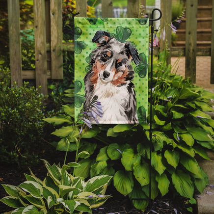 Decorate your space with our St Patrick's Day Australian Shepherd artwork on a Garden Flag. Enhance the beauty of your garden, patio, or yard with Caroline's Treasures Decorative Garden Flag, proudly made in the USA. Crafted from two pieces of thick, double-sided polyester fabric, this 2-ply garden flag is designed to withstand various weather conditions, making it water-resistant and weatherproof. Featuring correctly readable words on both sides, this garden flag offers a delightful visual experience from any angle. With its heavier weight, it stands out among other garden flags, ensuring stability and durability even in wind, rain, and snow. Measuring approximately 11 1/4 inches by 15 1/2 inches, this flag allows you to personalize your outdoor decor. It comes with a 1 1/2-inch sleeve sewn in, allowing easy attachment to any standard garden flag stand or garden size porch hanger (sold separately). Make a statement in your outdoor space with Caroline's Treasures Decorative Garden Flag, a vibrant and high-quality flag that adds color and personality to your surroundings. Proudly made in the USA, it's a symbol of quality craftsmanship and attention to detail.