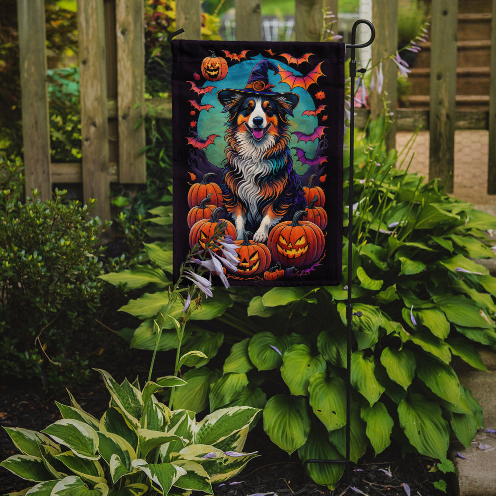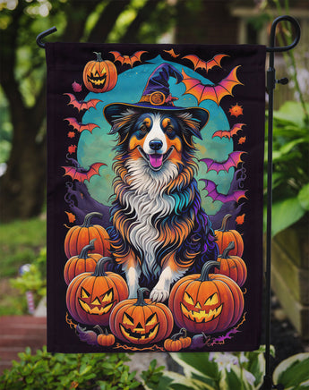 Decorate your space with our Halloween Australian Shepherd artwork on a Garden Flag. Enhance the beauty of your garden, patio, or yard with Caroline's Treasures Decorative Garden Flag, proudly made in the USA. Crafted from two pieces of thick, double-sided polyester fabric, this 2-ply garden flag is designed to withstand various weather conditions, making it water-resistant and weatherproof. Featuring correctly readable words on both sides, this garden flag offers a delightful visual experience from any angle. With its heavier weight, it stands out among other garden flags, ensuring stability and durability even in wind, rain, and snow. Measuring approximately 11 1/4 inches by 15 1/2 inches, this flag allows you to personalize your outdoor decor. It comes with a 1 1/2-inch sleeve sewn in, allowing easy attachment to any standard garden flag stand or garden size porch hanger (sold separately). Make a statement in your outdoor space with Caroline's Treasures Decorative Garden Flag, a vibrant and high-quality flag that adds color and personality to your surroundings. Proudly made in the USA, it's a symbol of quality craftsmanship and attention to detail.