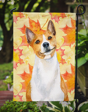Decorate your space with our Basenji artwork on a Garden Flag. Enhance the beauty of your garden, patio, or yard with Caroline's Treasures Decorative Garden Flag, proudly made in the USA. Crafted from two pieces of thick, double-sided polyester fabric, this 2-ply garden flag is designed to withstand various weather conditions, making it water-resistant and weatherproof. Featuring correctly readable words on both sides, this garden flag offers a delightful visual experience from any angle. With its heavier weight, it stands out among other garden flags, ensuring stability and durability even in wind, rain, and snow. Measuring approximately 11 1/4 inches by 15 1/2 inches, this flag allows you to personalize your outdoor decor. It comes with a 1 1/2-inch sleeve sewn in, allowing easy attachment to any standard garden flag stand or garden size porch hanger (sold separately). Make a statement in your outdoor space with Caroline's Treasures Decorative Garden Flag, a vibrant and high-quality flag that adds color and personality to your surroundings. Proudly made in the USA, it's a symbol of quality craftsmanship and attention to detail.