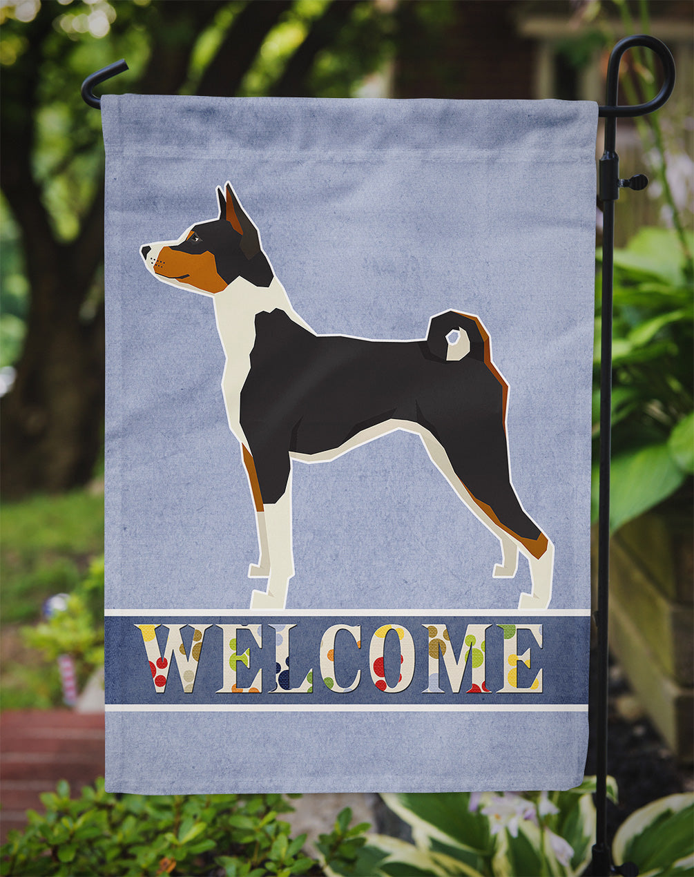 Decorate your space with our Basenji artwork on a Garden Flag. Enhance the beauty of your garden, patio, or yard with Caroline's Treasures Decorative Garden Flag, proudly made in the USA. Crafted from two pieces of thick, double-sided polyester fabric, this 2-ply garden flag is designed to withstand various weather conditions, making it water-resistant and weatherproof. Featuring correctly readable words on both sides, this garden flag offers a delightful visual experience from any angle. With its heavier weight, it stands out among other garden flags, ensuring stability and durability even in wind, rain, and snow. Measuring approximately 11 1/4 inches by 15 1/2 inches, this flag allows you to personalize your outdoor decor. It comes with a 1 1/2-inch sleeve sewn in, allowing easy attachment to any standard garden flag stand or garden size porch hanger (sold separately). Make a statement in your outdoor space with Caroline's Treasures Decorative Garden Flag, a vibrant and high-quality flag that adds color and personality to your surroundings. Proudly made in the USA, it's a symbol of quality craftsmanship and attention to detail.