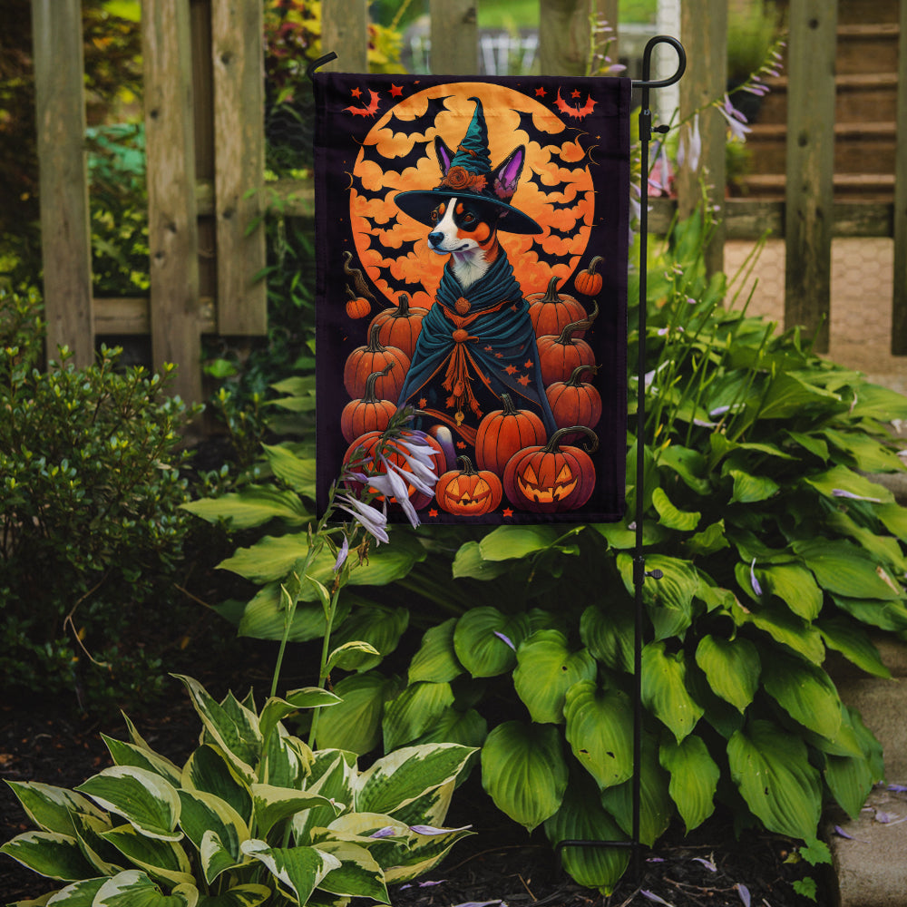 Decorate your space with our Halloween Basenji artwork on a Garden Flag. Enhance the beauty of your garden, patio, or yard with Caroline's Treasures Decorative Garden Flag, proudly made in the USA. Crafted from two pieces of thick, double-sided polyester fabric, this 2-ply garden flag is designed to withstand various weather conditions, making it water-resistant and weatherproof. Featuring correctly readable words on both sides, this garden flag offers a delightful visual experience from any angle. With its heavier weight, it stands out among other garden flags, ensuring stability and durability even in wind, rain, and snow. Measuring approximately 11 1/4 inches by 15 1/2 inches, this flag allows you to personalize your outdoor decor. It comes with a 1 1/2-inch sleeve sewn in, allowing easy attachment to any standard garden flag stand or garden size porch hanger (sold separately). Make a statement in your outdoor space with Caroline's Treasures Decorative Garden Flag, a vibrant and high-quality flag that adds color and personality to your surroundings. Proudly made in the USA, it's a symbol of quality craftsmanship and attention to detail.