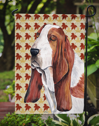 Decorate your space with our Basset Hound artwork on a Garden Flag. Bring a bit of Fall into your home with a Fall Garden Flag. Enhance the beauty of your garden, patio, or yard with Caroline's Treasures Decorative Garden Flag, proudly made in the USA. Crafted from two pieces of thick, double-sided polyester fabric, this 2-ply garden flag is designed to withstand various weather conditions, making it water-resistant and weatherproof. Featuring correctly readable words on both sides, this garden flag offers a delightful visual experience from any angle. With its heavier weight, it stands out among other garden flags, ensuring stability and durability even in wind, rain, and snow. Measuring approximately 11 1/4 inches by 15 1/2 inches, this flag allows you to personalize your outdoor decor. It comes with a 1 1/2-inch sleeve sewn in, allowing easy attachment to any standard garden flag stand or garden size porch hanger (sold separately). Make a statement in your outdoor space with Caroline's Treasures Decorative Garden Flag, a vibrant and high-quality flag that adds color and personality to your surroundings. Proudly made in the USA, it's a symbol of quality craftsmanship and attention to detail.