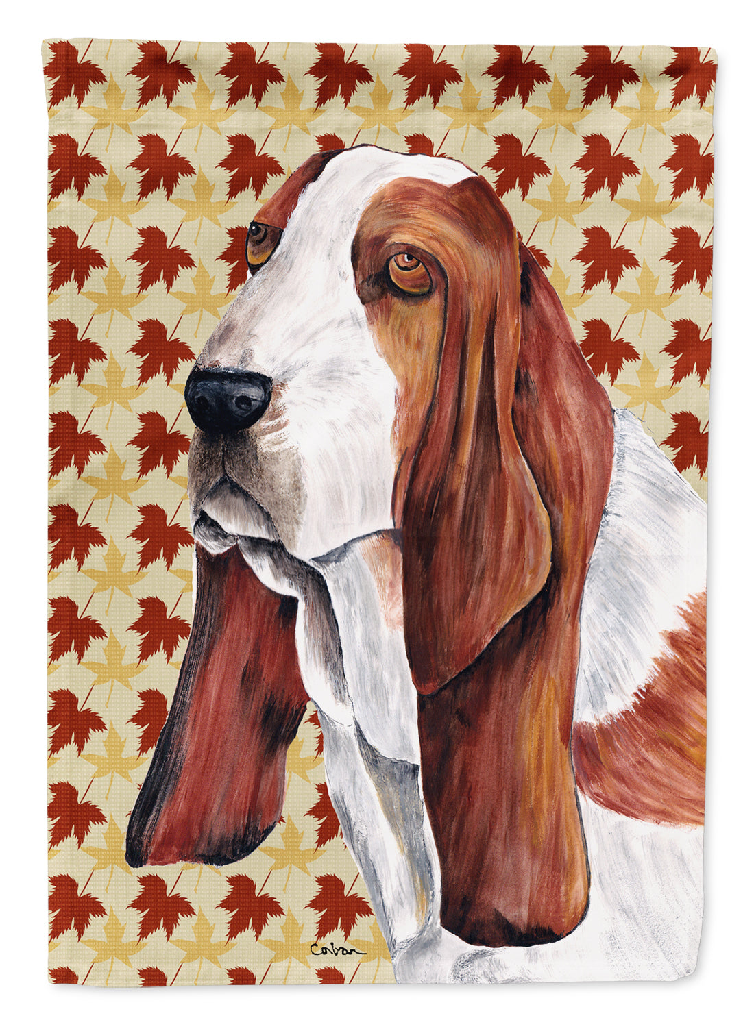 Basset Hound Fall Leaves Portrait Flag Garden Size