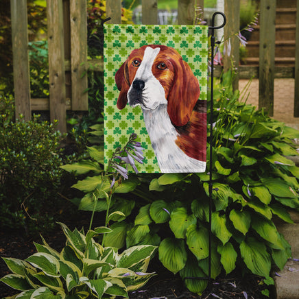 Decorate your space with our St Patrick's Day Beagle artwork on a Garden Flag. Enhance the beauty of your garden, patio, or yard with Caroline's Treasures Decorative Garden Flag, proudly made in the USA. Crafted from two pieces of thick, double-sided polyester fabric, this 2-ply garden flag is designed to withstand various weather conditions, making it water-resistant and weatherproof. Featuring correctly readable words on both sides, this garden flag offers a delightful visual experience from any angle. With its heavier weight, it stands out among other garden flags, ensuring stability and durability even in wind, rain, and snow. Measuring approximately 11 1/4 inches by 15 1/2 inches, this flag allows you to personalize your outdoor decor. It comes with a 1 1/2-inch sleeve sewn in, allowing easy attachment to any standard garden flag stand or garden size porch hanger (sold separately). Make a statement in your outdoor space with Caroline's Treasures Decorative Garden Flag, a vibrant and high-quality flag that adds color and personality to your surroundings. Proudly made in the USA, it's a symbol of quality craftsmanship and attention to detail.