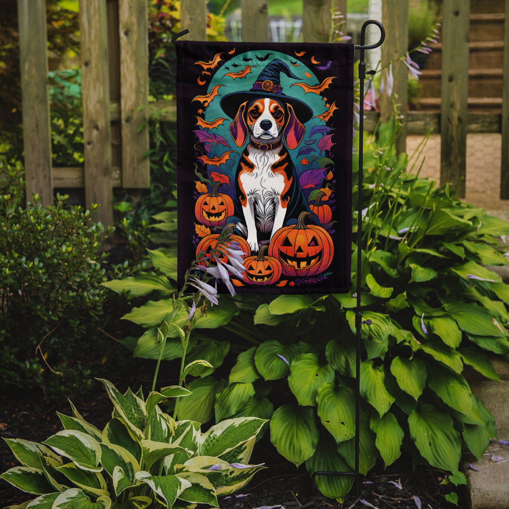 Decorate your space with our Halloween Beagle artwork on a Garden Flag. Enhance the beauty of your garden, patio, or yard with Caroline's Treasures Decorative Garden Flag, proudly made in the USA. Crafted from two pieces of thick, double-sided polyester fabric, this 2-ply garden flag is designed to withstand various weather conditions, making it water-resistant and weatherproof. Featuring correctly readable words on both sides, this garden flag offers a delightful visual experience from any angle. With its heavier weight, it stands out among other garden flags, ensuring stability and durability even in wind, rain, and snow. Measuring approximately 11 1/4 inches by 15 1/2 inches, this flag allows you to personalize your outdoor decor. It comes with a 1 1/2-inch sleeve sewn in, allowing easy attachment to any standard garden flag stand or garden size porch hanger (sold separately). Make a statement in your outdoor space with Caroline's Treasures Decorative Garden Flag, a vibrant and high-quality flag that adds color and personality to your surroundings. Proudly made in the USA, it's a symbol of quality craftsmanship and attention to detail.