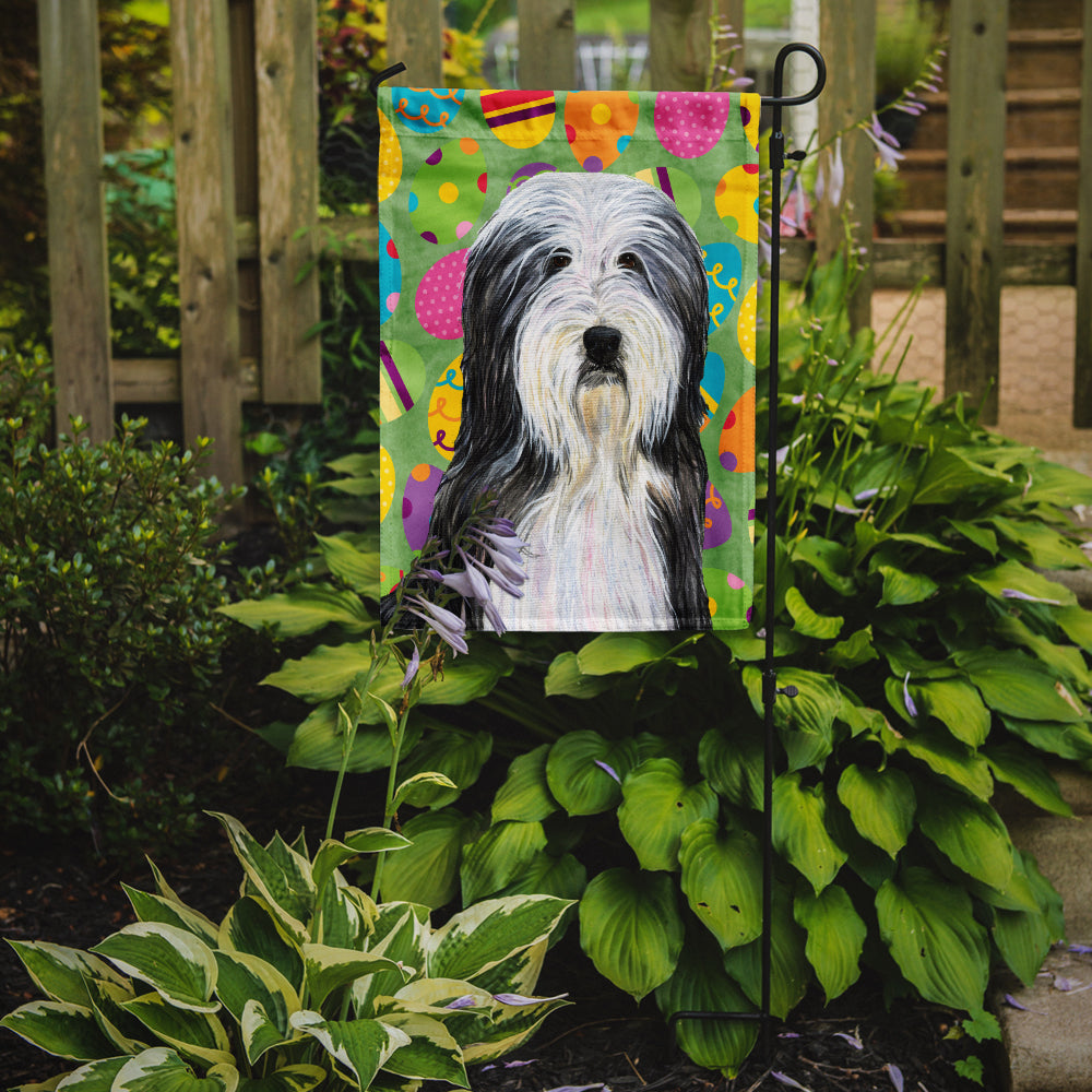 Decorate your space with our Easter Bearded Collie artwork on a Garden Flag. Enhance the beauty of your garden, patio, or yard with Caroline's Treasures Decorative Garden Flag, proudly made in the USA. Crafted from two pieces of thick, double-sided polyester fabric, this 2-ply garden flag is designed to withstand various weather conditions, making it water-resistant and weatherproof. Featuring correctly readable words on both sides, this garden flag offers a delightful visual experience from any angle. With its heavier weight, it stands out among other garden flags, ensuring stability and durability even in wind, rain, and snow. Measuring approximately 11 1/4 inches by 15 1/2 inches, this flag allows you to personalize your outdoor decor. It comes with a 1 1/2-inch sleeve sewn in, allowing easy attachment to any standard garden flag stand or garden size porch hanger (sold separately). Make a statement in your outdoor space with Caroline's Treasures Decorative Garden Flag, a vibrant and high-quality flag that adds color and personality to your surroundings. Proudly made in the USA, it's a symbol of quality craftsmanship and attention to detail.