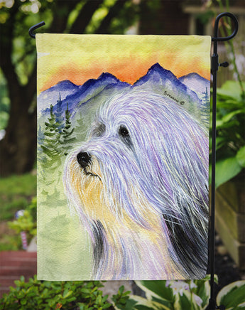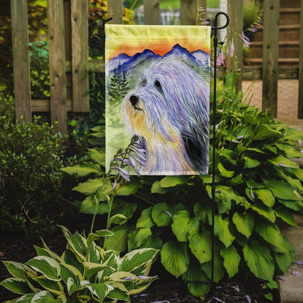 Decorate your space with our Bearded Collie artwork on a Garden Flag. Enhance the beauty of your garden, patio, or yard with Caroline's Treasures Decorative Garden Flag, proudly made in the USA. Crafted from two pieces of thick, double-sided polyester fabric, this 2-ply garden flag is designed to withstand various weather conditions, making it water-resistant and weatherproof. Featuring correctly readable words on both sides, this garden flag offers a delightful visual experience from any angle. With its heavier weight, it stands out among other garden flags, ensuring stability and durability even in wind, rain, and snow. Measuring approximately 11 1/4 inches by 15 1/2 inches, this flag allows you to personalize your outdoor decor. It comes with a 1 1/2-inch sleeve sewn in, allowing easy attachment to any standard garden flag stand or garden size porch hanger (sold separately). Make a statement in your outdoor space with Caroline's Treasures Decorative Garden Flag, a vibrant and high-quality flag that adds color and personality to your surroundings. Proudly made in the USA, it's a symbol of quality craftsmanship and attention to detail.