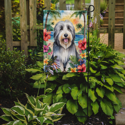 Decorate your space with our Bearded Collie artwork on a Garden Flag. Bring a bit of Summer into your home with a Summer Garden Flag. Enhance the beauty of your garden, patio, or yard with Caroline's Treasures Decorative Garden Flag, proudly made in the USA. Crafted from two pieces of thick, double-sided polyester fabric, this 2-ply garden flag is designed to withstand various weather conditions, making it water-resistant and weatherproof. Featuring correctly readable words on both sides, this garden flag offers a delightful visual experience from any angle. With its heavier weight, it stands out among other garden flags, ensuring stability and durability even in wind, rain, and snow. Measuring approximately 11 1/4 inches by 15 1/2 inches, this flag allows you to personalize your outdoor decor. It comes with a 1 1/2-inch sleeve sewn in, allowing easy attachment to any standard garden flag stand or garden size porch hanger (sold separately). Make a statement in your outdoor space with Caroline's Treasures Decorative Garden Flag, a vibrant and high-quality flag that adds color and personality to your surroundings. Proudly made in the USA, it's a symbol of quality craftsmanship and attention to detail.