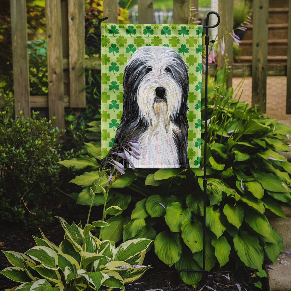 Decorate your space with our St Patrick's Day Bearded Collie artwork on a Garden Flag. Enhance the beauty of your garden, patio, or yard with Caroline's Treasures Decorative Garden Flag, proudly made in the USA. Crafted from two pieces of thick, double-sided polyester fabric, this 2-ply garden flag is designed to withstand various weather conditions, making it water-resistant and weatherproof. Featuring correctly readable words on both sides, this garden flag offers a delightful visual experience from any angle. With its heavier weight, it stands out among other garden flags, ensuring stability and durability even in wind, rain, and snow. Measuring approximately 11 1/4 inches by 15 1/2 inches, this flag allows you to personalize your outdoor decor. It comes with a 1 1/2-inch sleeve sewn in, allowing easy attachment to any standard garden flag stand or garden size porch hanger (sold separately). Make a statement in your outdoor space with Caroline's Treasures Decorative Garden Flag, a vibrant and high-quality flag that adds color and personality to your surroundings. Proudly made in the USA, it's a symbol of quality craftsmanship and attention to detail.
