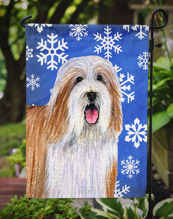 Decorate your space with our Christmas Bearded Collie artwork on a Garden Flag. Bring a bit of Winter into your home with a Winter Garden Flag. Enhance the beauty of your garden, patio, or yard with Caroline's Treasures Decorative Garden Flag, proudly made in the USA. Crafted from two pieces of thick, double-sided polyester fabric, this 2-ply garden flag is designed to withstand various weather conditions, making it water-resistant and weatherproof. Featuring correctly readable words on both sides, this garden flag offers a delightful visual experience from any angle. With its heavier weight, it stands out among other garden flags, ensuring stability and durability even in wind, rain, and snow. Measuring approximately 11 1/4 inches by 15 1/2 inches, this flag allows you to personalize your outdoor decor. It comes with a 1 1/2-inch sleeve sewn in, allowing easy attachment to any standard garden flag stand or garden size porch hanger (sold separately). Make a statement in your outdoor space with Caroline's Treasures Decorative Garden Flag, a vibrant and high-quality flag that adds color and personality to your surroundings. Proudly made in the USA, it's a symbol of quality craftsmanship and attention to detail.