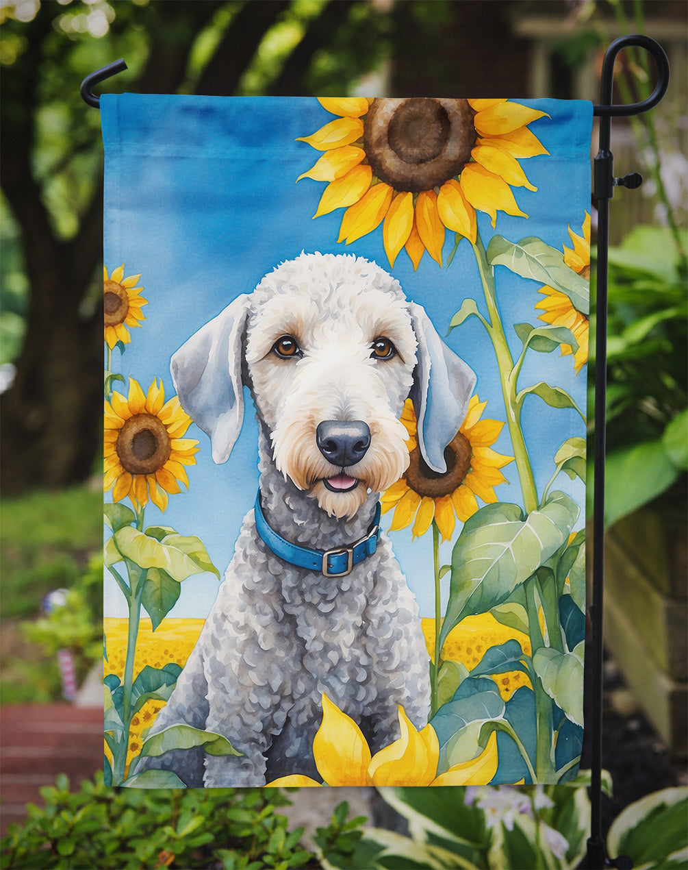 Bedlington Terrier in Sunflowers Garden Flag