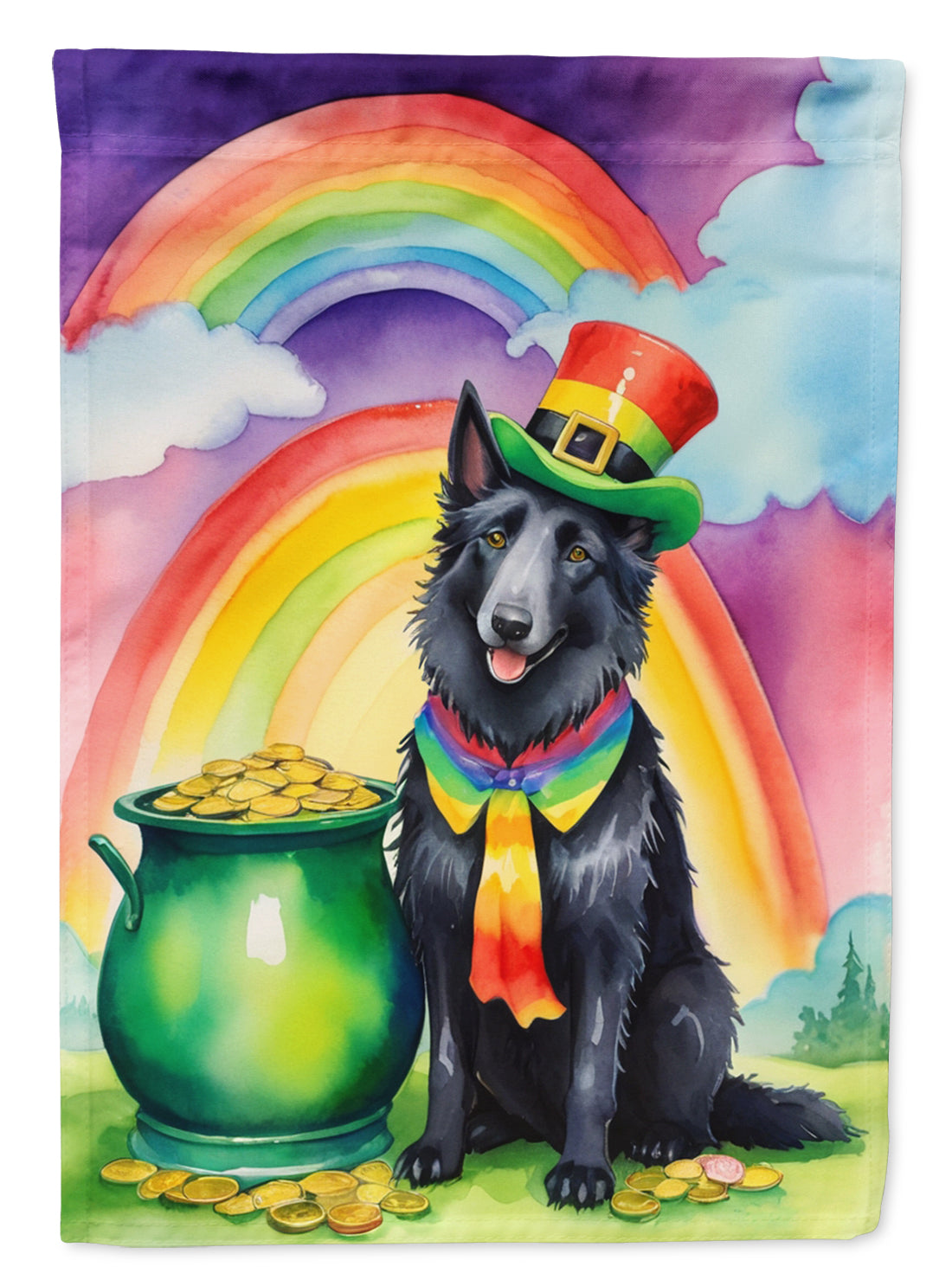 Decorate your space with our St Patrick's Day Belgian Sheepdog artwork on a Garden Flag. Enhance the beauty of your garden, patio, or yard with Caroline's Treasures Decorative Garden Flag, proudly made in the USA. Crafted from two pieces of thick, double-sided polyester fabric, this 2-ply garden flag is designed to withstand various weather conditions, making it water-resistant and weatherproof. Featuring correctly readable words on both sides, this garden flag offers a delightful visual experience from any angle. With its heavier weight, it stands out among other garden flags, ensuring stability and durability even in wind, rain, and snow. Measuring approximately 11 1/4 inches by 15 1/2 inches, this flag allows you to personalize your outdoor decor. It comes with a 1 1/2-inch sleeve sewn in, allowing easy attachment to any standard garden flag stand or garden size porch hanger (sold separately). Make a statement in your outdoor space with Caroline's Treasures Decorative Garden Flag, a vibrant and high-quality flag that adds color and personality to your surroundings. Proudly made in the USA, it's a symbol of quality craftsmanship and attention to detail.