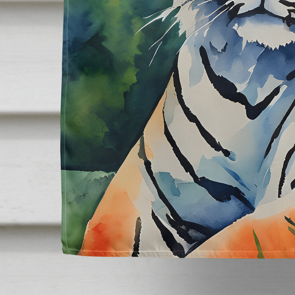 Decorate your space with our Bengal Tiger artwork on a Large Flag. Presenting our Heavy Duty Polyester House Size Decorative Sleeve Pole Flag, a vibrant addition to enhance the aesthetic appeal of your home. This large decorative flag, measuring approximately 28 x 40 inches, offers ample coverage and visibility. Each flag is meticulously sewn and made individually, ensuring a unique piece that may slightly vary in size. It's a sleeve pole flag, designed to fit a standard decorative flag pole effortlessly. Please note that the flag pole and bracket are not included and should be purchased separately. What sets our flag apart is its dual-sided print. The design is mirrored on both sides of the fabric, allowing for uniform visibility regardless of the angle. Printed in full color, our flag showcases vibrant hues that truly stand out. To ensure lasting vibrancy and durability, the dyes are heat-set into the fabric. This ensures your flag remains bright and captivating through various weather conditions. Elevate the look of your home with our Heavy Duty Polyester House Size Decorative Sleeve Pole Flag!