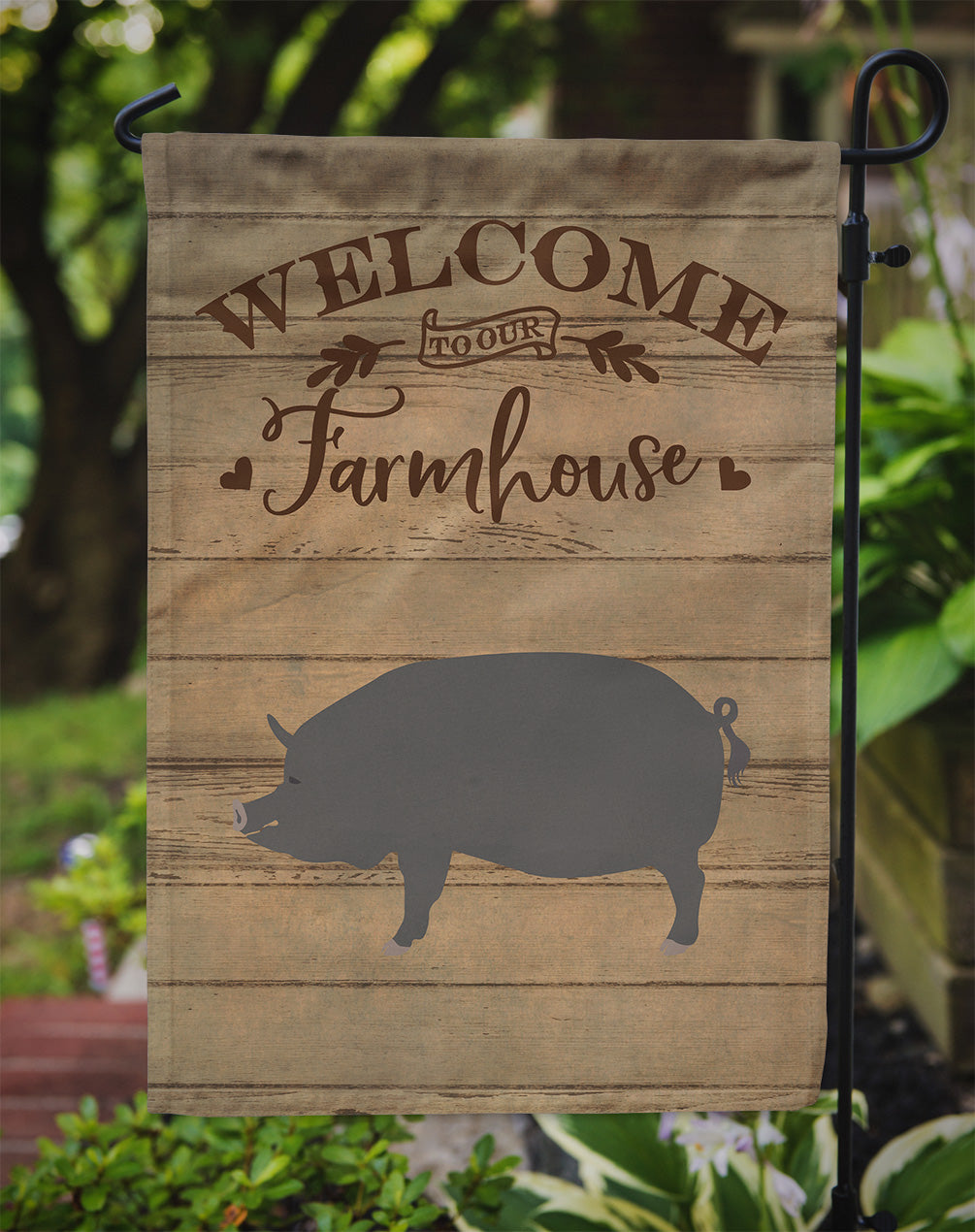 Decorate your space with our Berkshire Pig artwork on a Garden Flag. Enhance the beauty of your garden, patio, or yard with Caroline's Treasures Decorative Garden Flag, proudly made in the USA. Crafted from two pieces of thick, double-sided polyester fabric, this 2-ply garden flag is designed to withstand various weather conditions, making it water-resistant and weatherproof. Featuring correctly readable words on both sides, this garden flag offers a delightful visual experience from any angle. With its heavier weight, it stands out among other garden flags, ensuring stability and durability even in wind, rain, and snow. Measuring approximately 11 1/4 inches by 15 1/2 inches, this flag allows you to personalize your outdoor decor. It comes with a 1 1/2-inch sleeve sewn in, allowing easy attachment to any standard garden flag stand or garden size porch hanger (sold separately). Make a statement in your outdoor space with Caroline's Treasures Decorative Garden Flag, a vibrant and high-quality flag that adds color and personality to your surroundings. Proudly made in the USA, it's a symbol of quality craftsmanship and attention to detail.