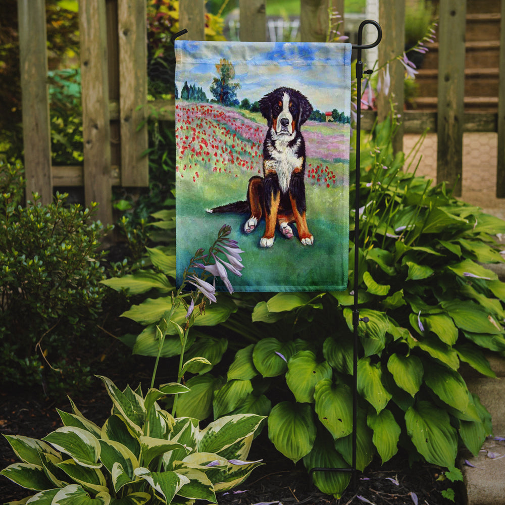 Decorate your space with our Bernese Mountain Dog artwork on a Garden Flag. Enhance the beauty of your garden, patio, or yard with Caroline's Treasures Decorative Garden Flag, proudly made in the USA. Crafted from two pieces of thick, double-sided polyester fabric, this 2-ply garden flag is designed to withstand various weather conditions, making it water-resistant and weatherproof. Featuring correctly readable words on both sides, this garden flag offers a delightful visual experience from any angle. With its heavier weight, it stands out among other garden flags, ensuring stability and durability even in wind, rain, and snow. Measuring approximately 11 1/4 inches by 15 1/2 inches, this flag allows you to personalize your outdoor decor. It comes with a 1 1/2-inch sleeve sewn in, allowing easy attachment to any standard garden flag stand or garden size porch hanger (sold separately). Make a statement in your outdoor space with Caroline's Treasures Decorative Garden Flag, a vibrant and high-quality flag that adds color and personality to your surroundings. Proudly made in the USA, it's a symbol of quality craftsmanship and attention to detail.