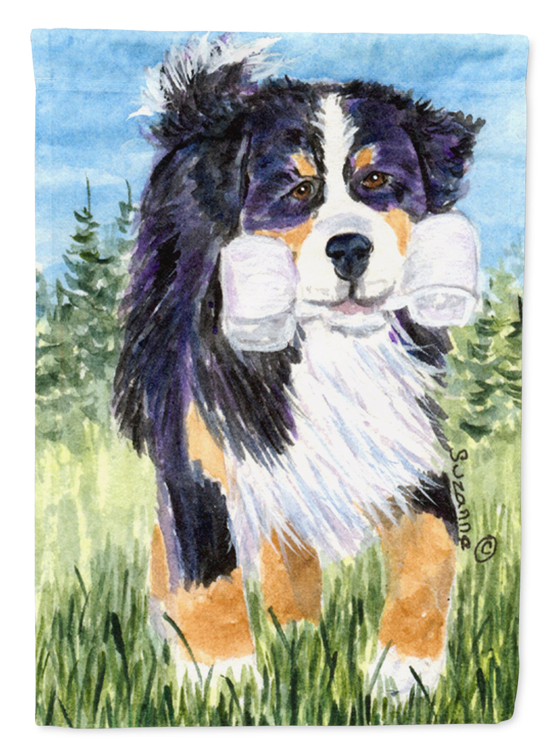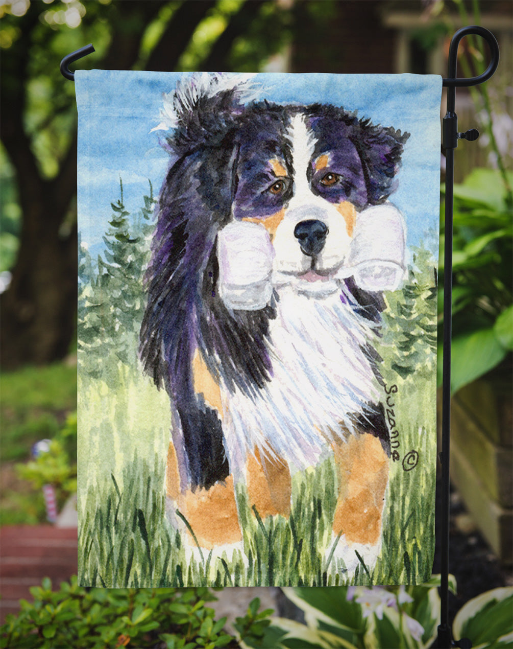 Decorate your space with our Bernese Mountain Dog artwork on a Garden Flag. Enhance the beauty of your garden, patio, or yard with Caroline's Treasures Decorative Garden Flag, proudly made in the USA. Crafted from two pieces of thick, double-sided polyester fabric, this 2-ply garden flag is designed to withstand various weather conditions, making it water-resistant and weatherproof. Featuring correctly readable words on both sides, this garden flag offers a delightful visual experience from any angle. With its heavier weight, it stands out among other garden flags, ensuring stability and durability even in wind, rain, and snow. Measuring approximately 11 1/4 inches by 15 1/2 inches, this flag allows you to personalize your outdoor decor. It comes with a 1 1/2-inch sleeve sewn in, allowing easy attachment to any standard garden flag stand or garden size porch hanger (sold separately). Make a statement in your outdoor space with Caroline's Treasures Decorative Garden Flag, a vibrant and high-quality flag that adds color and personality to your surroundings. Proudly made in the USA, it's a symbol of quality craftsmanship and attention to detail.