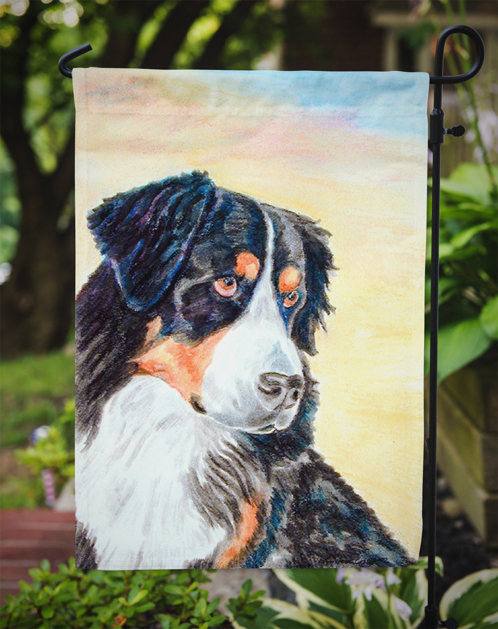 Decorate your space with our Bernese Mountain Dog artwork on a Garden Flag. Enhance the beauty of your garden, patio, or yard with Caroline's Treasures Decorative Garden Flag, proudly made in the USA. Crafted from two pieces of thick, double-sided polyester fabric, this 2-ply garden flag is designed to withstand various weather conditions, making it water-resistant and weatherproof. Featuring correctly readable words on both sides, this garden flag offers a delightful visual experience from any angle. With its heavier weight, it stands out among other garden flags, ensuring stability and durability even in wind, rain, and snow. Measuring approximately 11 1/4 inches by 15 1/2 inches, this flag allows you to personalize your outdoor decor. It comes with a 1 1/2-inch sleeve sewn in, allowing easy attachment to any standard garden flag stand or garden size porch hanger (sold separately). Make a statement in your outdoor space with Caroline's Treasures Decorative Garden Flag, a vibrant and high-quality flag that adds color and personality to your surroundings. Proudly made in the USA, it's a symbol of quality craftsmanship and attention to detail.