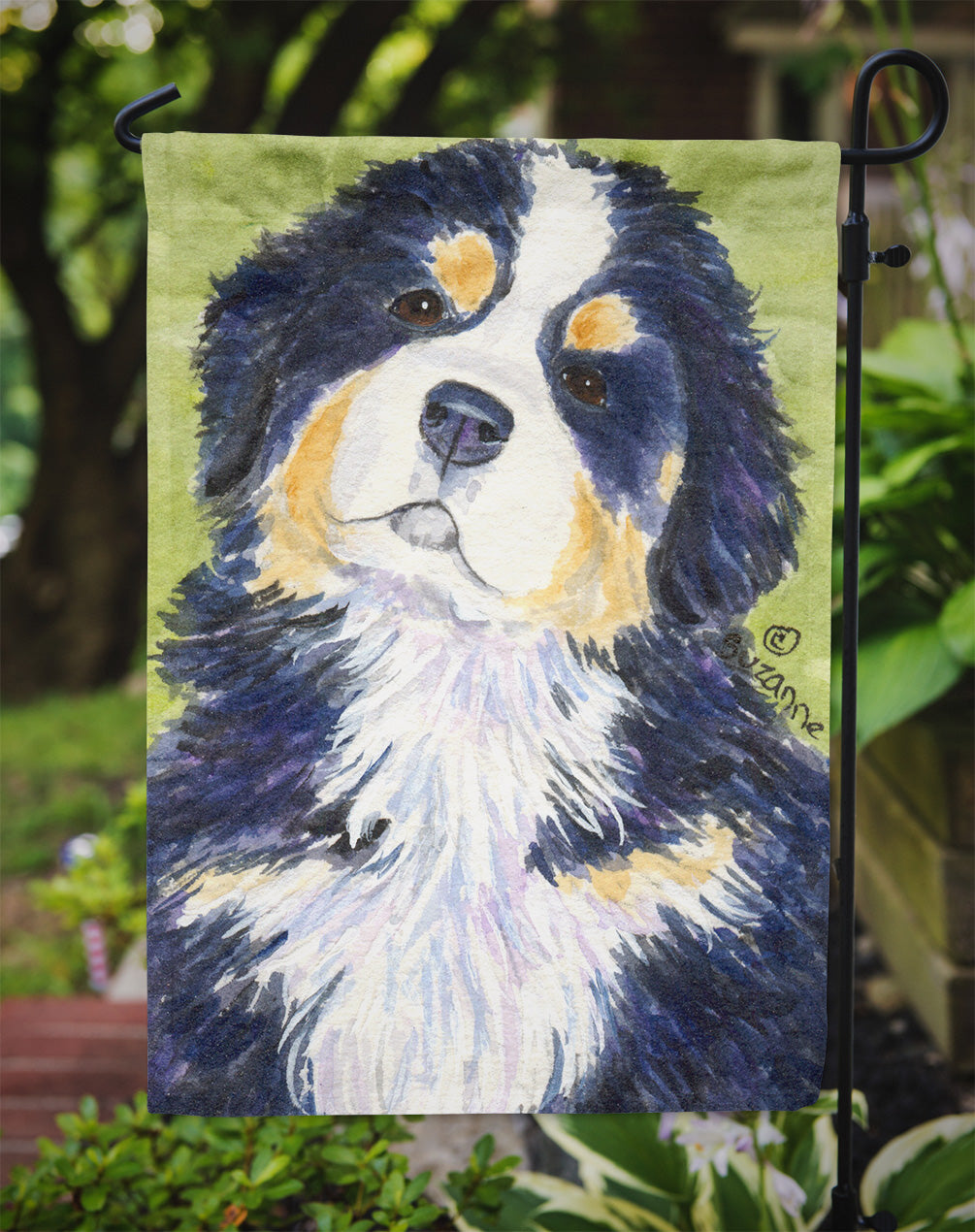 Decorate your space with our Bernese Mountain Dog artwork on a Garden Flag. Enhance the beauty of your garden, patio, or yard with Caroline's Treasures Decorative Garden Flag, proudly made in the USA. Crafted from two pieces of thick, double-sided polyester fabric, this 2-ply garden flag is designed to withstand various weather conditions, making it water-resistant and weatherproof. Featuring correctly readable words on both sides, this garden flag offers a delightful visual experience from any angle. With its heavier weight, it stands out among other garden flags, ensuring stability and durability even in wind, rain, and snow. Measuring approximately 11 1/4 inches by 15 1/2 inches, this flag allows you to personalize your outdoor decor. It comes with a 1 1/2-inch sleeve sewn in, allowing easy attachment to any standard garden flag stand or garden size porch hanger (sold separately). Make a statement in your outdoor space with Caroline's Treasures Decorative Garden Flag, a vibrant and high-quality flag that adds color and personality to your surroundings. Proudly made in the USA, it's a symbol of quality craftsmanship and attention to detail.