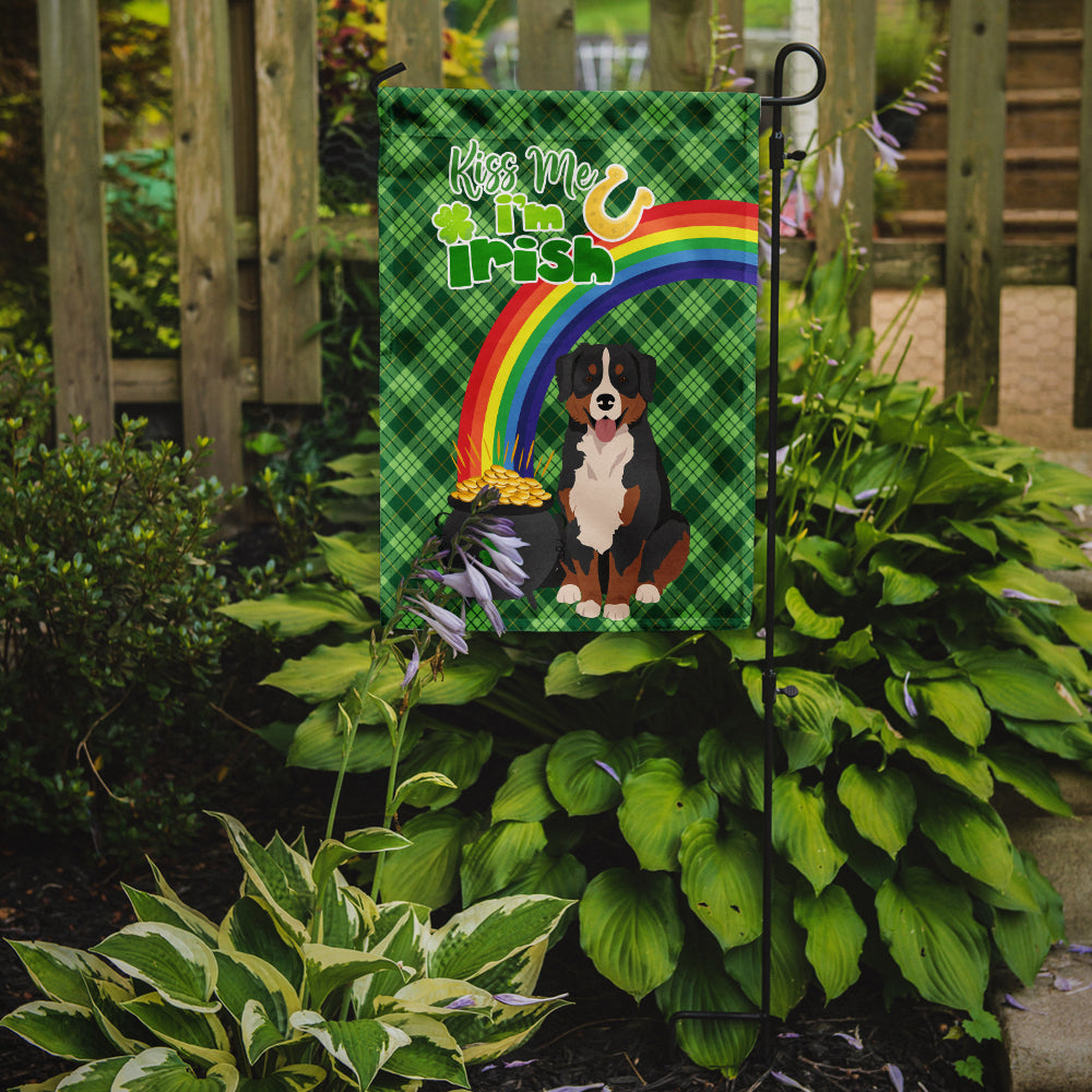 Decorate your space with our St Patrick's Day Bernese Mountain Dog artwork on a Garden Flag. Enhance the beauty of your garden, patio, or yard with Caroline's Treasures Decorative Garden Flag, proudly made in the USA. Crafted from two pieces of thick, double-sided polyester fabric, this 2-ply garden flag is designed to withstand various weather conditions, making it water-resistant and weatherproof. Featuring correctly readable words on both sides, this garden flag offers a delightful visual experience from any angle. With its heavier weight, it stands out among other garden flags, ensuring stability and durability even in wind, rain, and snow. Measuring approximately 11 1/4 inches by 15 1/2 inches, this flag allows you to personalize your outdoor decor. It comes with a 1 1/2-inch sleeve sewn in, allowing easy attachment to any standard garden flag stand or garden size porch hanger (sold separately). Make a statement in your outdoor space with Caroline's Treasures Decorative Garden Flag, a vibrant and high-quality flag that adds color and personality to your surroundings. Proudly made in the USA, it's a symbol of quality craftsmanship and attention to detail.