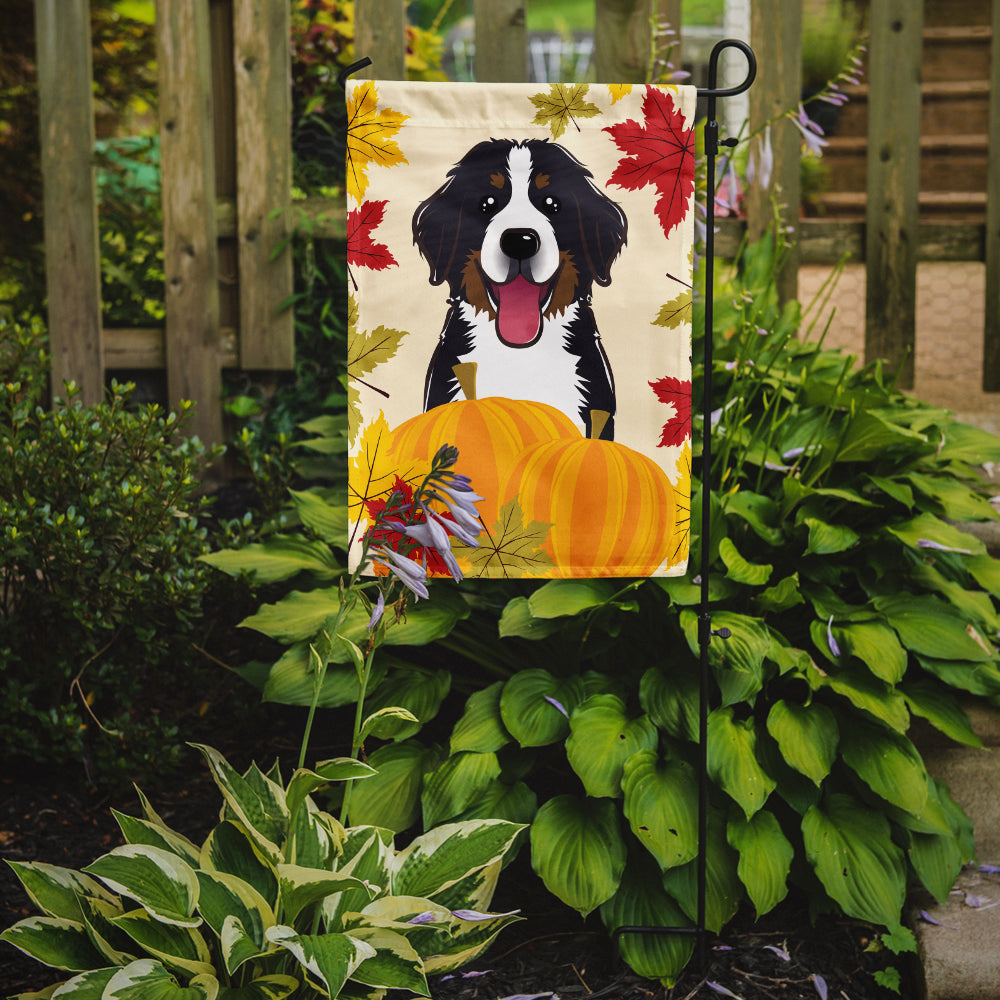 Decorate your space with our Thanksgiving Bernese Mountain Dog artwork on a Garden Flag. Enhance the beauty of your garden, patio, or yard with Caroline's Treasures Decorative Garden Flag, proudly made in the USA. Crafted from two pieces of thick, double-sided polyester fabric, this 2-ply garden flag is designed to withstand various weather conditions, making it water-resistant and weatherproof. Featuring correctly readable words on both sides, this garden flag offers a delightful visual experience from any angle. With its heavier weight, it stands out among other garden flags, ensuring stability and durability even in wind, rain, and snow. Measuring approximately 11 1/4 inches by 15 1/2 inches, this flag allows you to personalize your outdoor decor. It comes with a 1 1/2-inch sleeve sewn in, allowing easy attachment to any standard garden flag stand or garden size porch hanger (sold separately). Make a statement in your outdoor space with Caroline's Treasures Decorative Garden Flag, a vibrant and high-quality flag that adds color and personality to your surroundings. Proudly made in the USA, it's a symbol of quality craftsmanship and attention to detail.