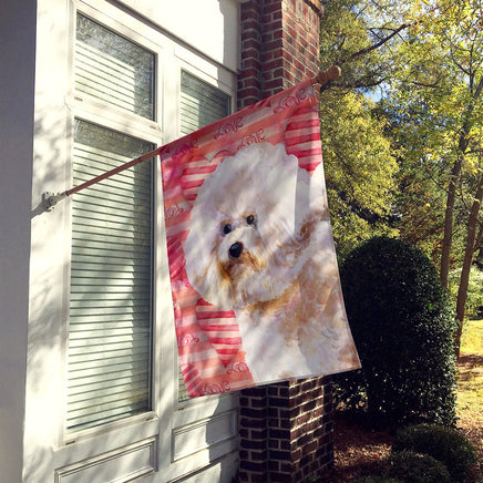 Decorate your space with our Valentine's Day Bichon Frise artwork on a Large Flag. Presenting our Heavy Duty Polyester House Size Decorative Sleeve Pole Flag, a vibrant addition to enhance the aesthetic appeal of your home. This large decorative flag, measuring approximately 28 x 40 inches, offers ample coverage and visibility. Each flag is meticulously sewn and made individually, ensuring a unique piece that may slightly vary in size. It's a sleeve pole flag, designed to fit a standard decorative flag pole effortlessly. Please note that the flag pole and bracket are not included and should be purchased separately. What sets our flag apart is its dual-sided print. The design is mirrored on both sides of the fabric, allowing for uniform visibility regardless of the angle. Printed in full color, our flag showcases vibrant hues that truly stand out. To ensure lasting vibrancy and durability, the dyes are heat-set into the fabric. This ensures your flag remains bright and captivating through various weather conditions. Elevate the look of your home with our Heavy Duty Polyester House Size Decorative Sleeve Pole Flag!