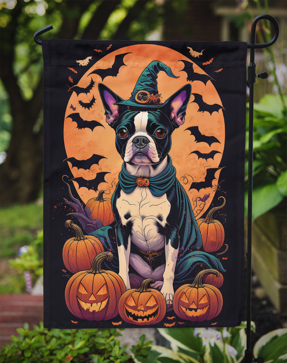 Decorate your space with our Halloween Boston Terrier artwork on a Garden Flag. Enhance the beauty of your garden, patio, or yard with Caroline's Treasures Decorative Garden Flag, proudly made in the USA. Crafted from two pieces of thick, double-sided polyester fabric, this 2-ply garden flag is designed to withstand various weather conditions, making it water-resistant and weatherproof. Featuring correctly readable words on both sides, this garden flag offers a delightful visual experience from any angle. With its heavier weight, it stands out among other garden flags, ensuring stability and durability even in wind, rain, and snow. Measuring approximately 11 1/4 inches by 15 1/2 inches, this flag allows you to personalize your outdoor decor. It comes with a 1 1/2-inch sleeve sewn in, allowing easy attachment to any standard garden flag stand or garden size porch hanger (sold separately). Make a statement in your outdoor space with Caroline's Treasures Decorative Garden Flag, a vibrant and high-quality flag that adds color and personality to your surroundings. Proudly made in the USA, it's a symbol of quality craftsmanship and attention to detail.
