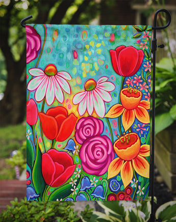 Bring a bit of Spring into your home with a Spring Garden Flag. Enhance the beauty of your garden, patio, or yard with Caroline's Treasures Decorative Garden Flag, proudly made in the USA. Crafted from two pieces of thick, double-sided polyester fabric, this 2-ply garden flag is designed to withstand various weather conditions, making it water-resistant and weatherproof. Featuring correctly readable words on both sides, this garden flag offers a delightful visual experience from any angle. With its heavier weight, it stands out among other garden flags, ensuring stability and durability even in wind, rain, and snow. Measuring approximately 11 1/4 inches by 15 1/2 inches, this flag allows you to personalize your outdoor decor. It comes with a 1 1/2-inch sleeve sewn in, allowing easy attachment to any standard garden flag stand or garden size porch hanger (sold separately). Make a statement in your outdoor space with Caroline's Treasures Decorative Garden Flag, a vibrant and high-quality flag that adds color and personality to your surroundings. Proudly made in the USA, it's a symbol of quality craftsmanship and attention to detail.