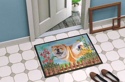 Decorate your space with Caroline's Treasures Chow Chow artwork on a Doormat. Bring a bit of Spring into your home with a Spring Doormat. Welcome your guests in style with Caroline's Treasures Artwork Door Mat, designed to withstand almost any weather condition. This mat, measuring approximately 18 by 27 inches, is held together by durable black binding tape. Its top layer, composed of polyester felt, is dyed with the eye-catching image you see on the mat. A few layers below provide the mat with stability, while its rubber bottom is stamped to help prevent slipping and ensures safety. Caroline's Treasures mat works wonderfully as both an indoor or outdoor door mat. For cleaning, simply hose it off with water or use a power washer - no need for any cleaner that produces suds. Avoid scrubbing with a brush, instead, opt for the vacuum on floor setting. Designed manufactured and printed in the USA, this mat is a perfect addition to your porch, outdoor kitchen, entryway, or any indoor space. Its unique design makes it a charming decorative rug that greets your guests and adds a stylish touch to your home decor.