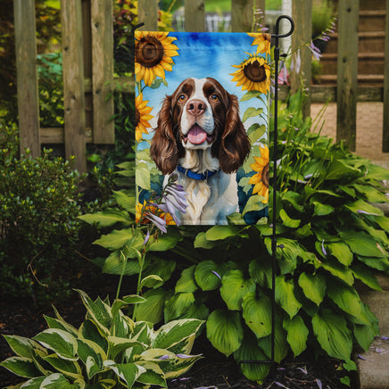 Decorate your space with Caroline's Treasures English Springer Spaniel artwork on a Garden Flag. Bring a bit of Summer into your home with a Summer Garden Flag. Enhance the beauty of your garden, patio, or yard with Caroline's Treasures Decorative Garden Flag, proudly made in the USA. Crafted from two pieces of thick, double-sided polyester fabric, this 2-ply garden flag is designed to withstand various weather conditions, making it water-resistant and weatherproof. Featuring correctly readable words on both sides, this garden flag offers a delightful visual experience from any angle. With its heavier weight, it stands out among other garden flags, ensuring stability and durability even in wind, rain, and snow. Measuring approximately 11 1/4 inches by 15 1/2 inches, this flag allows you to personalize your outdoor decor. It comes with a 1 1/2-inch sleeve sewn in, allowing easy attachment to any standard garden flag stand or garden size porch hanger (sold separately). Make a statement in your outdoor space with Caroline's Treasures Decorative Garden Flag, a vibrant and high-quality flag that adds color and personality to your surroundings. Proudly made in the USA, it's a symbol of quality craftsmanship and attention to detail.
