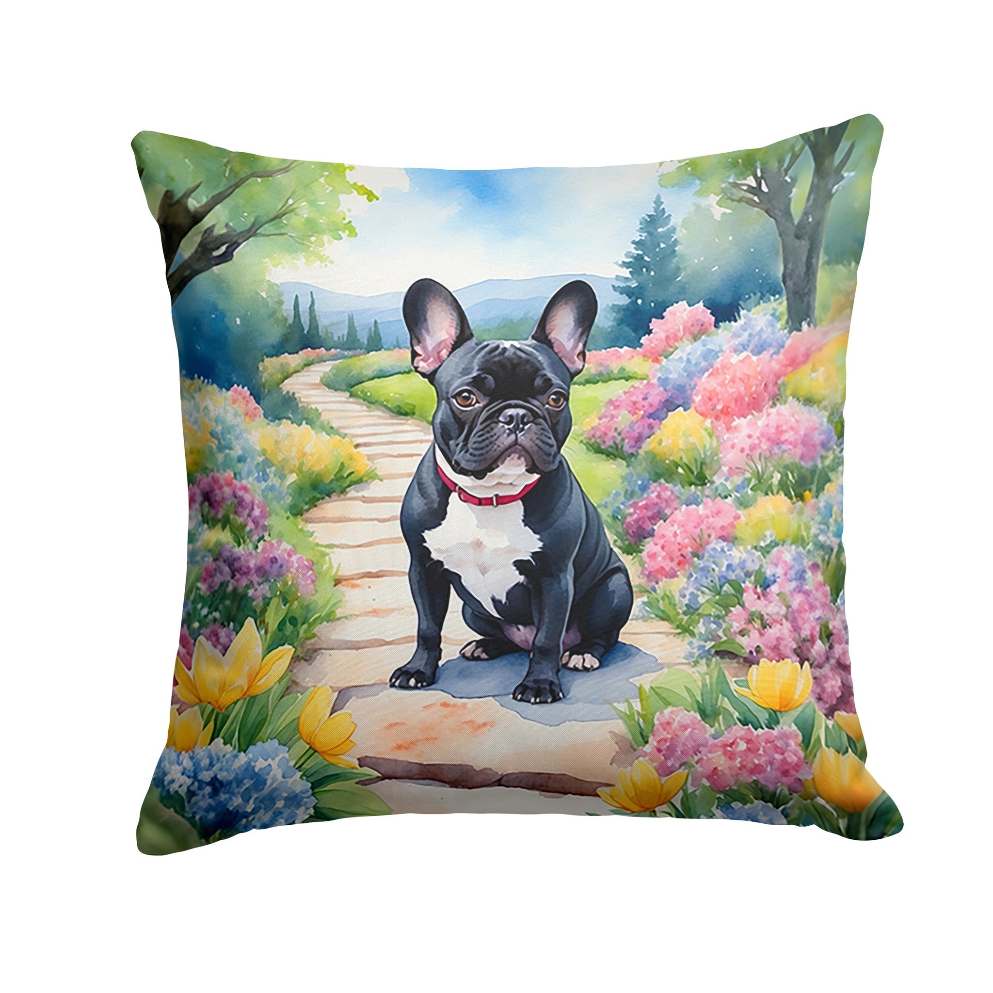 Decorate your space with Caroline's Treasures French Bulldog artwork on a Pillow. Bring a bit of Spring into your home with a Spring Pillow. Revitalize your outdoor or indoor living space with Caroline's Treasures 18x18 Fabric Decorative Pillow. With a generously sized dimension of approximately 18 inches by 18 inches, this pillow makes a comfortable and aesthetic addition to any seating area. Made from a unique, water-resistant material developed by Caroline's Treasures, the pillow sham is 100% polyester fabric that's durable and ready to weather any condition. Its vibrant, full-color artwork will not fade over time as it is dyed with color-fast dyes. Whether you place it on your patio furniture, porch, veranda, or indoor couch, its soft canvas fabric ensures a cozy experience. The pillow is handcrafted in the United States, featuring a sham created from three pieces of fabric and a polyester insert for enduring shape and overstuffed comfort. Despite being robustly built to endure the outdoors, it is as soft and snug as your favorite indoor cushions. Please note, as all Caroline's Treasures pillows are handmade, sizes may vary slightly, adding to the charm of this unique decorative item.