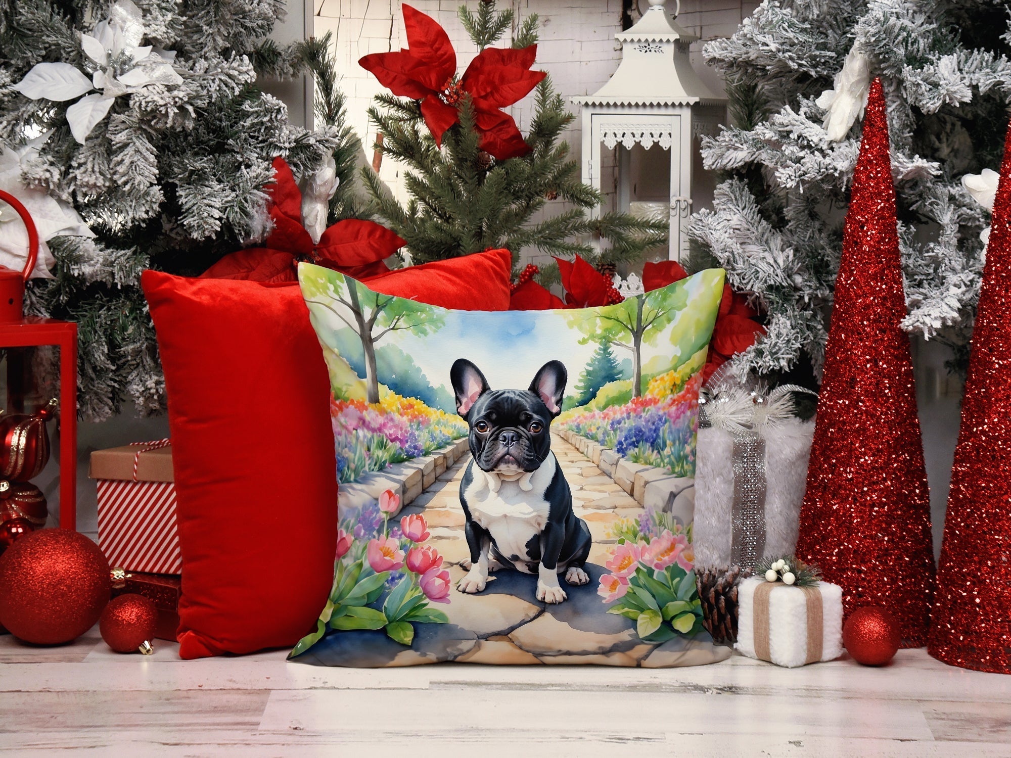 Decorate your space with Caroline's Treasures French Bulldog artwork on a Pillow. Bring a bit of Spring into your home with a Spring Pillow. Add a touch of vibrancy and comfort to your outdoor seating with Caroline's Treasures Fabric Decorative Pillow. Measuring approximately 14 inches by 14 inches, this outdoor pillow is crafted to elevate the appeal of your patio furniture, infusing it with vivid color and artistic flair. The pillow includes a 100% Polyester Fabric sham filled with a quality pillow form to provide superior comfort. Innovatively made from Caroline's Treasures brand new material, specifically woven for its water resistance, this pillow is designed for durability. The soft canvas fabric offers versatility in use, fit for your indoor couch or your outdoor patio, porch, or veranda. The fabric is dyed with colorfast dyes built for resilience against weather conditions, ensuring the pillow retains its beauty over time. Constructed by sewing three fabric pieces to create a sham, the polyester insert is then nestled inside to form the pillow, resulting in an overstuffed pillow that maintains its shape. Both the sham and the pillow insert are proudly made in the United States. As the pillows are handcrafted, there may be minor variations in size, further enhancing their unique charm. Experience comfort in style with Caroline's Treasures Fabric Decorative Pillow.