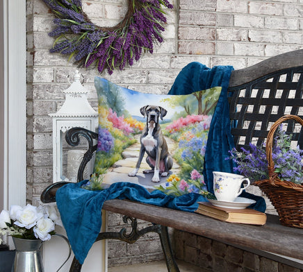 Decorate your space with Caroline's Treasures Great Dane artwork on a Pillow. Bring a bit of Spring into your home with a Spring Pillow. Revitalize your outdoor or indoor living space with Caroline's Treasures 18x18 Fabric Decorative Pillow. With a generously sized dimension of approximately 18 inches by 18 inches, this pillow makes a comfortable and aesthetic addition to any seating area. Made from a unique, water-resistant material developed by Caroline's Treasures, the pillow sham is 100% polyester fabric that's durable and ready to weather any condition. Its vibrant, full-color artwork will not fade over time as it is dyed with color-fast dyes. Whether you place it on your patio furniture, porch, veranda, or indoor couch, its soft canvas fabric ensures a cozy experience. The pillow is handcrafted in the United States, featuring a sham created from three pieces of fabric and a polyester insert for enduring shape and overstuffed comfort. Despite being robustly built to endure the outdoors, it is as soft and snug as your favorite indoor cushions. Please note, as all Caroline's Treasures pillows are handmade, sizes may vary slightly, adding to the charm of this unique decorative item.
