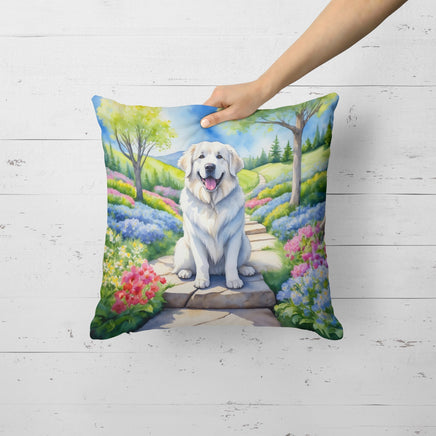 Decorate your space with Caroline's Treasures Great Pyrenees artwork on a Pillow. Bring a bit of Spring into your home with a Spring Pillow. Revitalize your outdoor or indoor living space with Caroline's Treasures 18x18 Fabric Decorative Pillow. With a generously sized dimension of approximately 18 inches by 18 inches, this pillow makes a comfortable and aesthetic addition to any seating area. Made from a unique, water-resistant material developed by Caroline's Treasures, the pillow sham is 100% polyester fabric that's durable and ready to weather any condition. Its vibrant, full-color artwork will not fade over time as it is dyed with color-fast dyes. Whether you place it on your patio furniture, porch, veranda, or indoor couch, its soft canvas fabric ensures a cozy experience. The pillow is handcrafted in the United States, featuring a sham created from three pieces of fabric and a polyester insert for enduring shape and overstuffed comfort. Despite being robustly built to endure the outdoors, it is as soft and snug as your favorite indoor cushions. Please note, as all Caroline's Treasures pillows are handmade, sizes may vary slightly, adding to the charm of this unique decorative item.