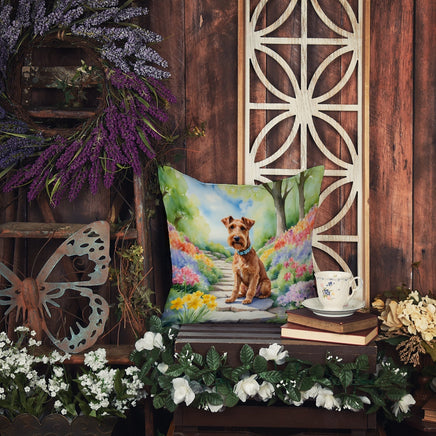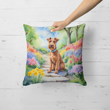 Decorate your space with Caroline's Treasures Irish Terrier artwork on a Pillow. Bring a bit of Spring into your home with a Spring Pillow. Revitalize your outdoor or indoor living space with Caroline's Treasures 18x18 Fabric Decorative Pillow. With a generously sized dimension of approximately 18 inches by 18 inches, this pillow makes a comfortable and aesthetic addition to any seating area. Made from a unique, water-resistant material developed by Caroline's Treasures, the pillow sham is 100% polyester fabric that's durable and ready to weather any condition. Its vibrant, full-color artwork will not fade over time as it is dyed with color-fast dyes. Whether you place it on your patio furniture, porch, veranda, or indoor couch, its soft canvas fabric ensures a cozy experience. The pillow is handcrafted in the United States, featuring a sham created from three pieces of fabric and a polyester insert for enduring shape and overstuffed comfort. Despite being robustly built to endure the outdoors, it is as soft and snug as your favorite indoor cushions. Please note, as all Caroline's Treasures pillows are handmade, sizes may vary slightly, adding to the charm of this unique decorative item.