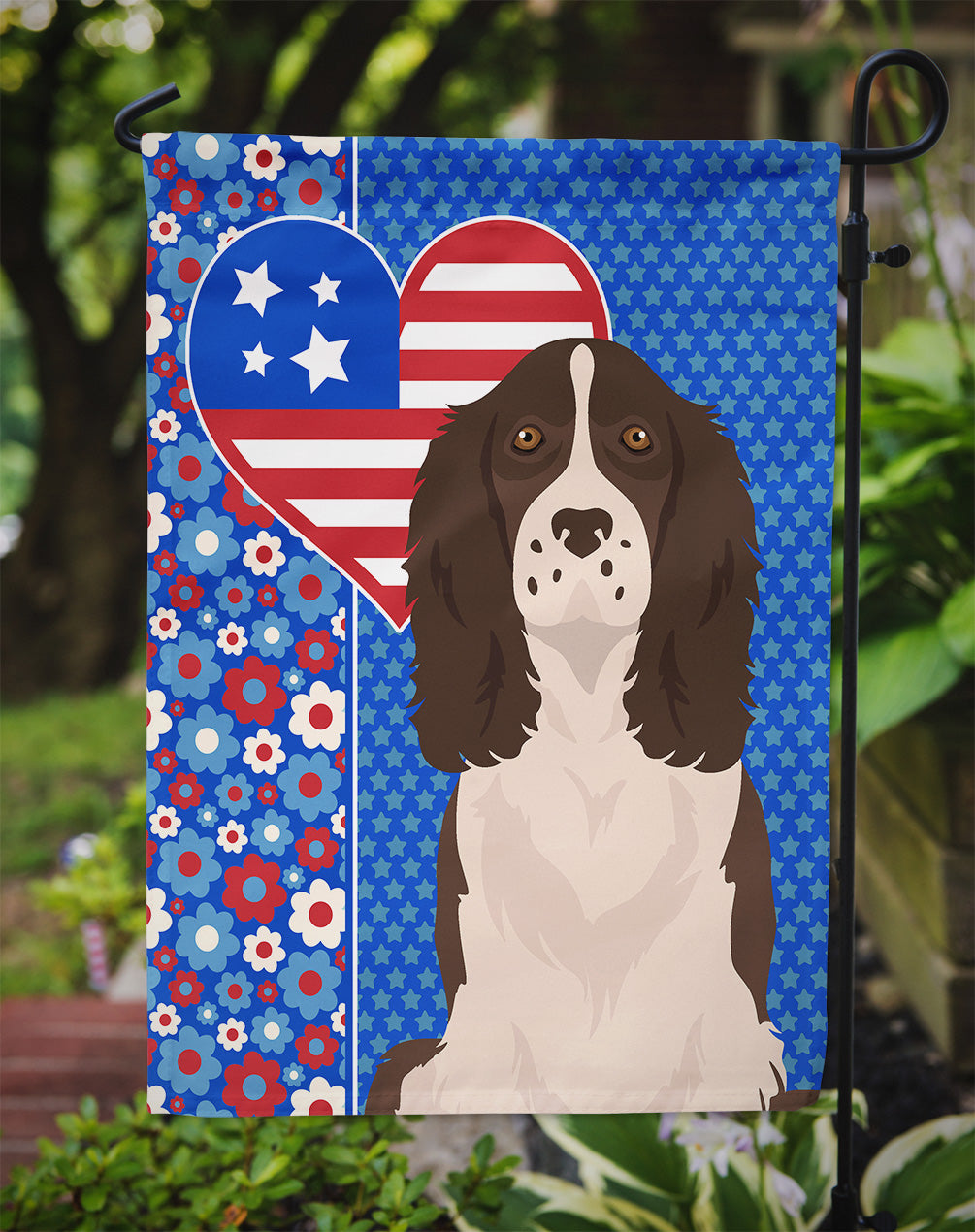 Decorate your space with Caroline's Treasures English Springer Spaniel artwork on a Garden Flag. Enhance the beauty of your garden, patio, or yard with Caroline's Treasures Decorative Garden Flag, proudly made in the USA. Crafted from two pieces of thick, double-sided polyester fabric, this 2-ply garden flag is designed to withstand various weather conditions, making it water-resistant and weatherproof. Featuring correctly readable words on both sides, this garden flag offers a delightful visual experience from any angle. With its heavier weight, it stands out among other garden flags, ensuring stability and durability even in wind, rain, and snow. Measuring approximately 11 1/4 inches by 15 1/2 inches, this flag allows you to personalize your outdoor decor. It comes with a 1 1/2-inch sleeve sewn in, allowing easy attachment to any standard garden flag stand or garden size porch hanger (sold separately). Make a statement in your outdoor space with Caroline's Treasures Decorative Garden Flag, a vibrant and high-quality flag that adds color and personality to your surroundings. Proudly made in the USA, it's a symbol of quality craftsmanship and attention to detail.
