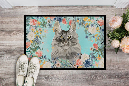 Decorate your space with Caroline's Treasures Maine Coon artwork on a Doormat. Welcome your guests in style with Caroline's Treasures Artwork Door Mat, designed to withstand almost any weather condition. This mat, measuring approximately 18 by 27 inches, is held together by durable black binding tape. Its top layer, composed of polyester felt, is dyed with the eye-catching image you see on the mat. A few layers below provide the mat with stability, while its rubber bottom is stamped to help prevent slipping and ensures safety. Caroline's Treasures mat works wonderfully as both an indoor or outdoor door mat. For cleaning, simply hose it off with water or use a power washer - no need for any cleaner that produces suds. Avoid scrubbing with a brush, instead, opt for the vacuum on floor setting. Designed manufactured and printed in the USA, this mat is a perfect addition to your porch, outdoor kitchen, entryway, or any indoor space. Its unique design makes it a charming decorative rug that greets your guests and adds a stylish touch to your home decor.