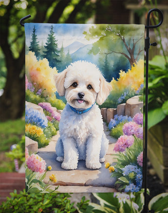 Decorate your space with Caroline's Treasures Maltipoo artwork on a Garden Flag. Bring a bit of Spring into your home with a Spring Garden Flag. Enhance the beauty of your garden, patio, or yard with Caroline's Treasures Decorative Garden Flag, proudly made in the USA. Crafted from two pieces of thick, double-sided polyester fabric, this 2-ply garden flag is designed to withstand various weather conditions, making it water-resistant and weatherproof. Featuring correctly readable words on both sides, this garden flag offers a delightful visual experience from any angle. With its heavier weight, it stands out among other garden flags, ensuring stability and durability even in wind, rain, and snow. Measuring approximately 11 1/4 inches by 15 1/2 inches, this flag allows you to personalize your outdoor decor. It comes with a 1 1/2-inch sleeve sewn in, allowing easy attachment to any standard garden flag stand or garden size porch hanger (sold separately). Make a statement in your outdoor space with Caroline's Treasures Decorative Garden Flag, a vibrant and high-quality flag that adds color and personality to your surroundings. Proudly made in the USA, it's a symbol of quality craftsmanship and attention to detail.