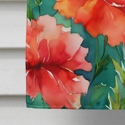 Decorate your space with Caroline's Treasures Ohio Scarlet Carnations artwork on a Large Flag. Presenting Caroline's Treasures Heavy Duty Polyester House Size Decorative Sleeve Pole Flag, a vibrant addition to enhance the aesthetic appeal of your home. This large decorative flag, measuring approximately 28 x 40 inches, offers ample coverage and visibility. Each flag is meticulously sewn and made individually, ensuring a unique piece that may slightly vary in size. It's a sleeve pole flag, designed to fit a standard decorative flag pole effortlessly. Please note that the flag pole and bracket are not included and should be purchased separately. What sets Caroline's Treasures flag apart is its dual-sided print. The design is mirrored on both sides of the fabric, allowing for uniform visibility regardless of the angle. To ensure lasting vibrancy and durability, the dyes are heat-set into the fabric. This ensures your flag remains bright and captivating through various weather conditions. Elevate the look of your home with Caroline's Treasures Heavy Duty Polyester House Size Decorative Sleeve Pole Flag!