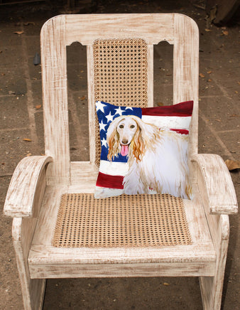 Decorate your space with our Afghan Hound artwork on a Pillow. Revitalize your outdoor or indoor living space with Caroline's Treasures 18x18 Fabric Decorative Pillow. With a generously sized dimension of approximately 18 inches by 18 inches, this pillow makes a comfortable and aesthetic addition to any seating area. Made from a unique, water-resistant material developed by Caroline's Treasures, the pillow sham is 100% polyester fabric that's durable and ready to weather any condition. Its vibrant, full-color artwork will not fade over time as it is dyed with color-fast dyes. Whether you place it on your patio furniture, porch, veranda, or indoor couch, its soft canvas fabric ensures a cozy experience. The pillow is handcrafted in the United States, featuring a sham created from three pieces of fabric and a polyester insert for enduring shape and overstuffed comfort. Despite being robustly built to endure the outdoors, it is as soft and snug as your favorite indoor cushions. Please note, as all our pillows are handmade, sizes may vary slightly, adding to the charm of this unique decorative item.
