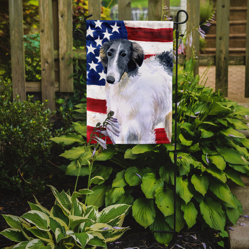 Decorate your space with Caroline's Treasures Borzoi/Russian Wolfhound artwork on a Garden Flag. Enhance the beauty of your garden, patio, or yard with Caroline's Treasures Decorative Garden Flag, proudly made in the USA. Crafted from two pieces of thick, double-sided polyester fabric, this 2-ply garden flag is designed to withstand various weather conditions, making it water-resistant and weatherproof. Featuring correctly readable words on both sides, this garden flag offers a delightful visual experience from any angle. With its heavier weight, it stands out among other garden flags, ensuring stability and durability even in wind, rain, and snow. Measuring approximately 11 1/4 inches by 15 1/2 inches, this flag allows you to personalize your outdoor decor. It comes with a 1 1/2-inch sleeve sewn in, allowing easy attachment to any standard garden flag stand or garden size porch hanger (sold separately). Make a statement in your outdoor space with Caroline's Treasures Decorative Garden Flag, a vibrant and high-quality flag that adds color and personality to your surroundings. Proudly made in the USA, it's a symbol of quality craftsmanship and attention to detail.