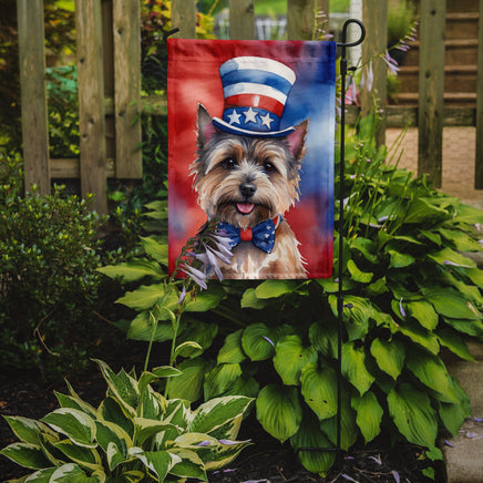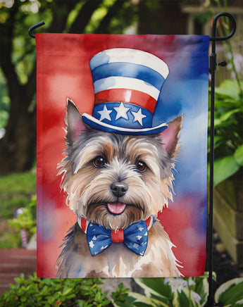 Decorate your space with Caroline's Treasures Cairn Terrier artwork on a Garden Flag. Enhance the beauty of your garden, patio, or yard with Caroline's Treasures Decorative Garden Flag, proudly made in the USA. Crafted from two pieces of thick, double-sided polyester fabric, this 2-ply garden flag is designed to withstand various weather conditions, making it water-resistant and weatherproof. Featuring correctly readable words on both sides, this garden flag offers a delightful visual experience from any angle. With its heavier weight, it stands out among other garden flags, ensuring stability and durability even in wind, rain, and snow. Measuring approximately 11 1/4 inches by 15 1/2 inches, this flag allows you to personalize your outdoor decor. It comes with a 1 1/2-inch sleeve sewn in, allowing easy attachment to any standard garden flag stand or garden size porch hanger (sold separately). Make a statement in your outdoor space with Caroline's Treasures Decorative Garden Flag, a vibrant and high-quality flag that adds color and personality to your surroundings. Proudly made in the USA, it's a symbol of quality craftsmanship and attention to detail.