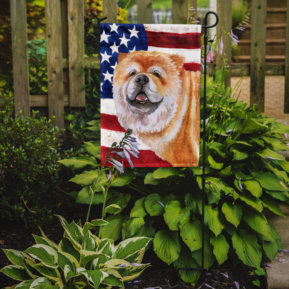 Decorate your space with Caroline's Treasures Chow Chow artwork on a Garden Flag. Enhance the beauty of your garden, patio, or yard with Caroline's Treasures Decorative Garden Flag, proudly made in the USA. Crafted from two pieces of thick, double-sided polyester fabric, this 2-ply garden flag is designed to withstand various weather conditions, making it water-resistant and weatherproof. Featuring correctly readable words on both sides, this garden flag offers a delightful visual experience from any angle. With its heavier weight, it stands out among other garden flags, ensuring stability and durability even in wind, rain, and snow. Measuring approximately 11 1/4 inches by 15 1/2 inches, this flag allows you to personalize your outdoor decor. It comes with a 1 1/2-inch sleeve sewn in, allowing easy attachment to any standard garden flag stand or garden size porch hanger (sold separately). Make a statement in your outdoor space with Caroline's Treasures Decorative Garden Flag, a vibrant and high-quality flag that adds color and personality to your surroundings. Proudly made in the USA, it's a symbol of quality craftsmanship and attention to detail.