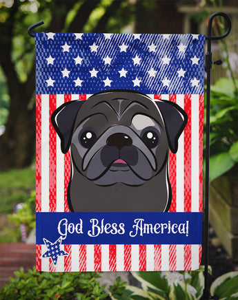 Decorate your space with our Pug artwork on a Garden Flag. Enhance the beauty of your garden, patio, or yard with Caroline's Treasures Decorative Garden Flag, proudly made in the USA. Crafted from two pieces of thick, double-sided polyester fabric, this 2-ply garden flag is designed to withstand various weather conditions, making it water-resistant and weatherproof. Featuring correctly readable words on both sides, this garden flag offers a delightful visual experience from any angle. With its heavier weight, it stands out among other garden flags, ensuring stability and durability even in wind, rain, and snow. Measuring approximately 11 1/4 inches by 15 1/2 inches, this flag allows you to personalize your outdoor decor. It comes with a 1 1/2-inch sleeve sewn in, allowing easy attachment to any standard garden flag stand or garden size porch hanger (sold separately). Make a statement in your outdoor space with Caroline's Treasures Decorative Garden Flag, a vibrant and high-quality flag that adds color and personality to your surroundings. Proudly made in the USA, it's a symbol of quality craftsmanship and attention to detail.