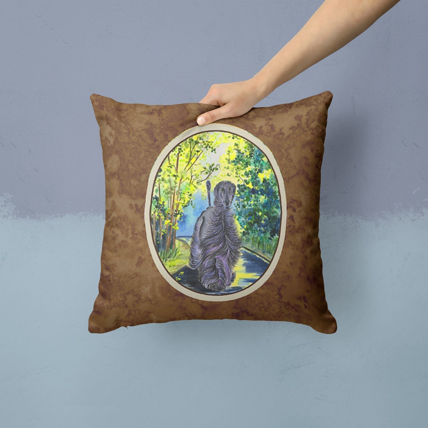 Decorate your space with our Afghan Hound artwork on a Pillow. Add a touch of vibrancy and comfort to your outdoor seating with Caroline's Treasures Fabric Decorative Pillow. Measuring approximately 14 inches by 14 inches, this outdoor pillow is crafted to elevate the appeal of your patio furniture, infusing it with vivid color and artistic flair. The pillow includes a 100% Polyester Fabric sham filled with a quality pillow form to provide superior comfort. Innovatively made from our brand new material, specifically woven for its water resistance, this pillow is designed for durability. The soft canvas fabric offers versatility in use, fit for your indoor couch or your outdoor patio, porch, or veranda. The fabric is dyed with colorfast dyes built for resilience against weather conditions, ensuring the pillow retains its beauty over time. Constructed by sewing three fabric pieces to create a sham, the polyester insert is then nestled inside to form the pillow, resulting in an overstuffed pillow that maintains its shape. Both the sham and the pillow insert are proudly made in the United States. As the pillows are handcrafted, there may be minor variations in size, further enhancing their unique charm. Experience comfort in style with Caroline's Treasures Fabric Decorative Pillow.