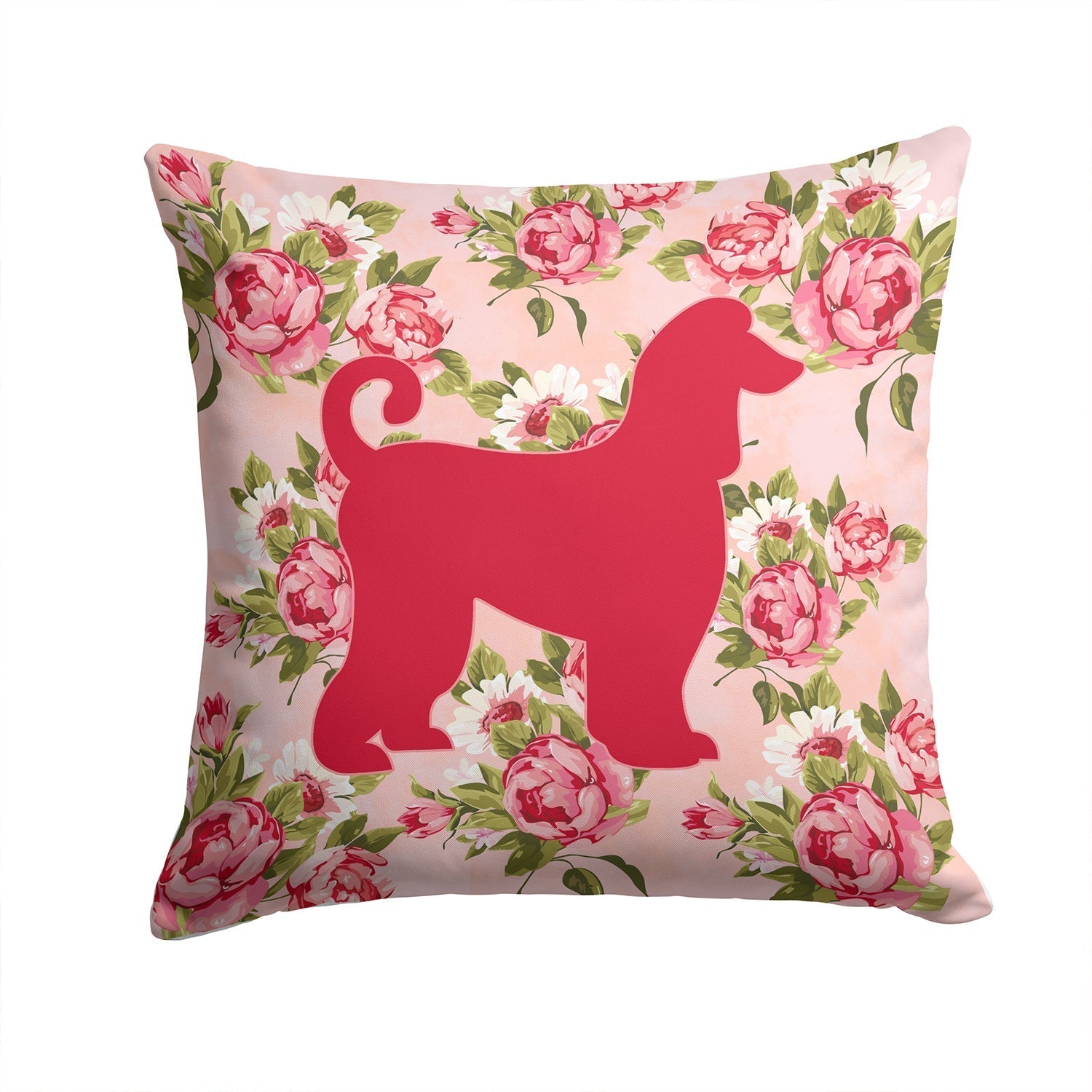Afghan Hound Shabby Chic Pink Roses Fabric Decorative Pillow BB1066-RS-PK-PW1414