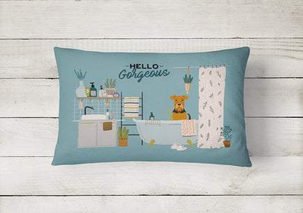 Airedale in Bathtub Canvas Fabric Decorative Pillow CK7463PW1216