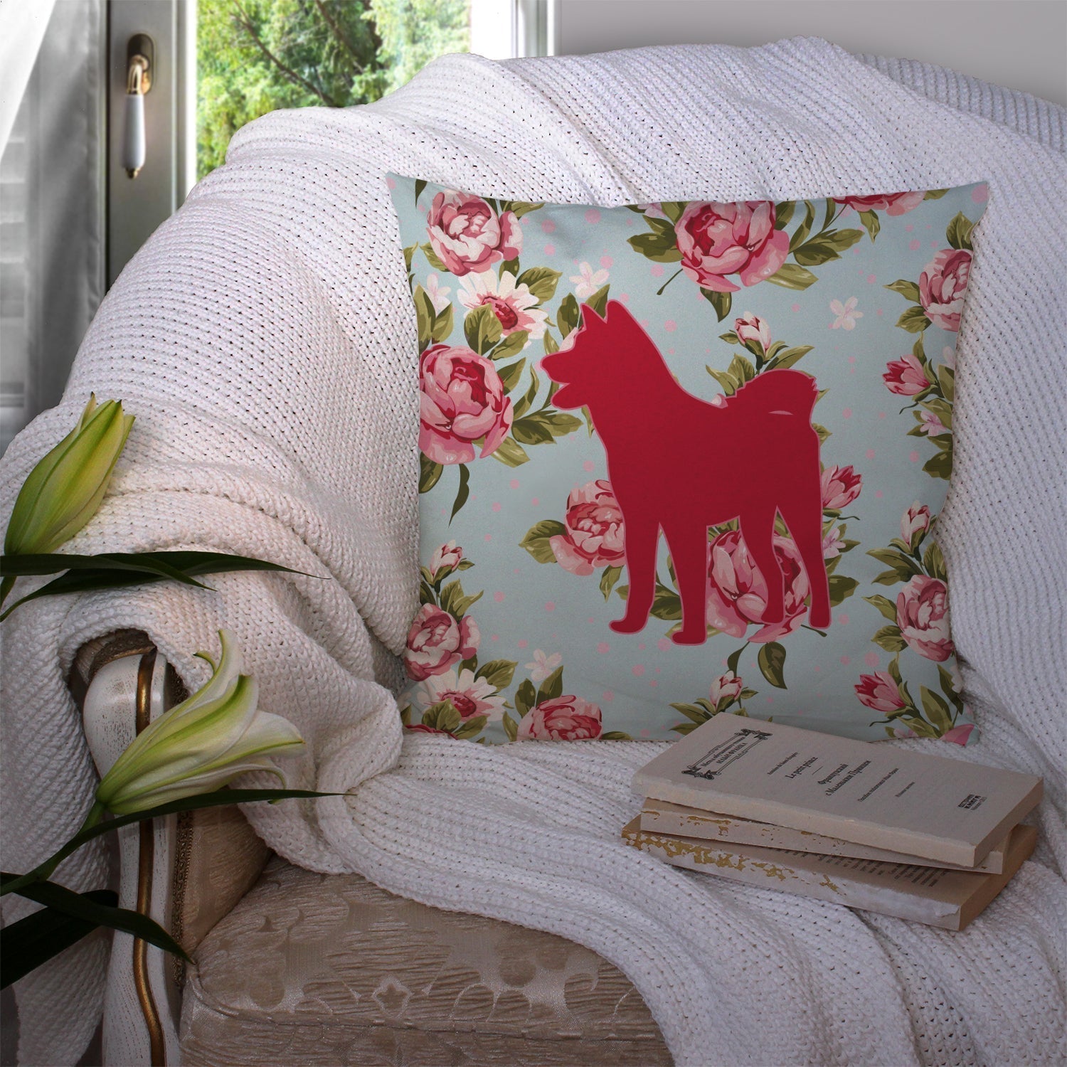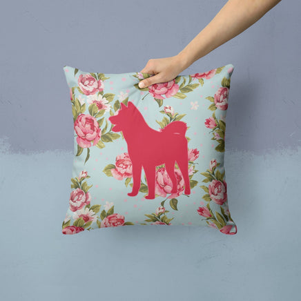Akita Shabby Chic Blue Roses Canvas Fabric Decorative Pillow BB1082
