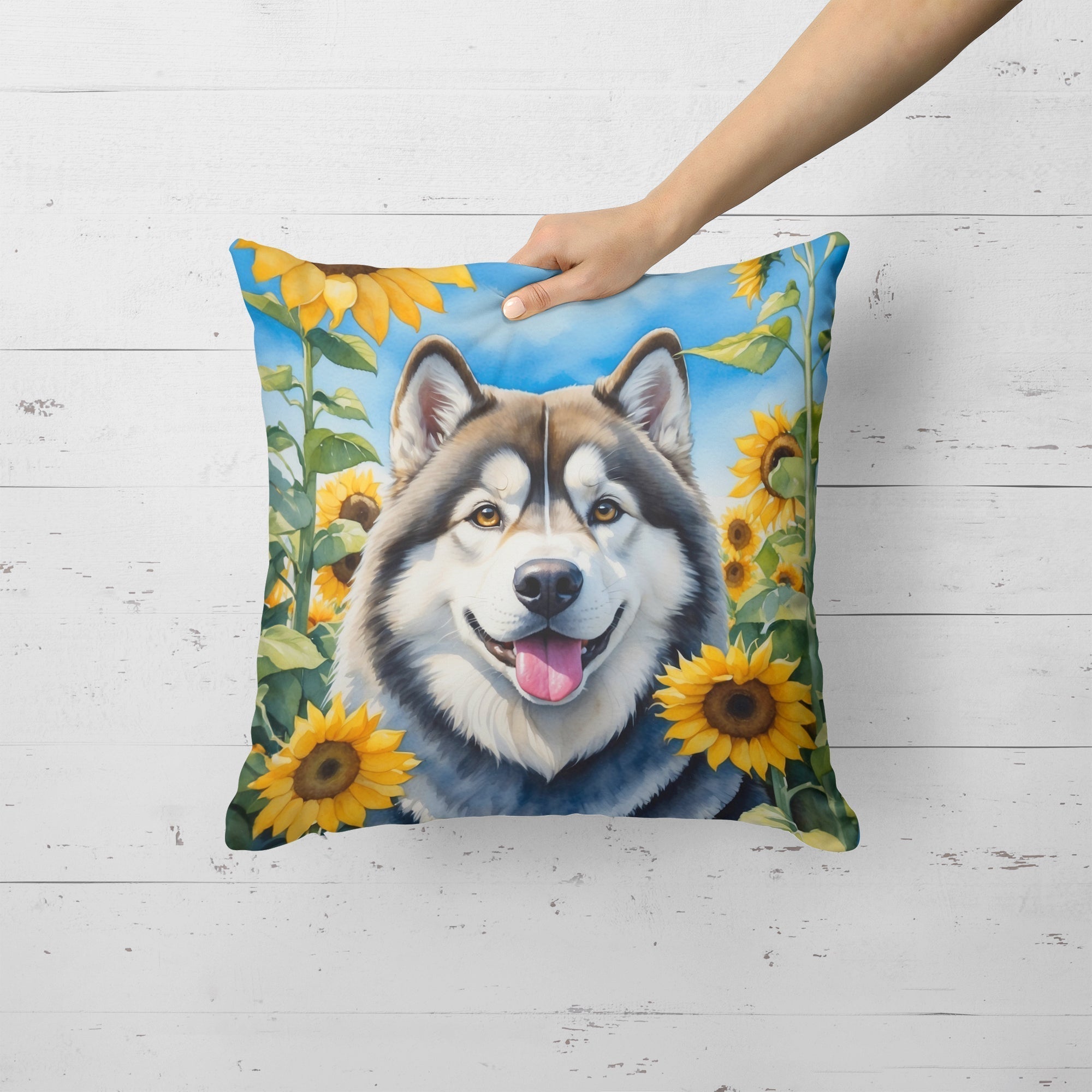 Alaskan Malamute in Sunflowers Throw Pillow