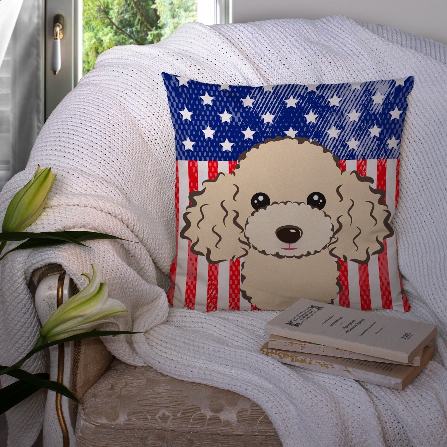 American Flag and Buff Poodle Fabric Decorative Pillow BB2188PW1414