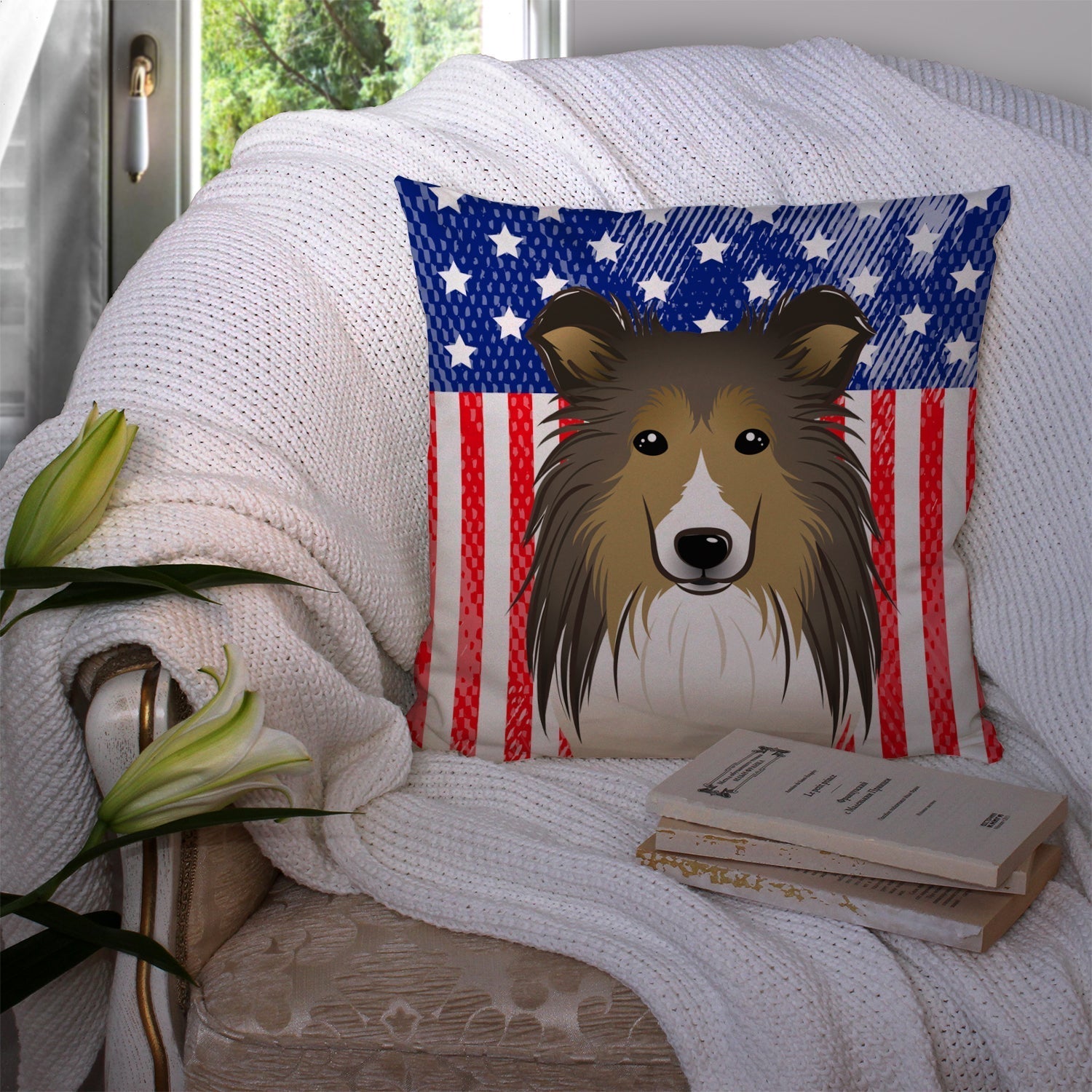 Decorate your space with our Sheltie/Shetland Sheepdog artwork on a Pillow. Add a touch of vibrancy and comfort to your outdoor seating with Caroline's Treasures Fabric Decorative Pillow. Measuring approximately 14 inches by 14 inches, this outdoor pillow is crafted to elevate the appeal of your patio furniture, infusing it with vivid color and artistic flair. The pillow includes a 100% Polyester Fabric sham filled with a quality pillow form to provide superior comfort. Innovatively made from our brand new material, specifically woven for its water resistance, this pillow is designed for durability. The soft canvas fabric offers versatility in use, fit for your indoor couch or your outdoor patio, porch, or veranda. The fabric is dyed with colorfast dyes built for resilience against weather conditions, ensuring the pillow retains its beauty over time. Constructed by sewing three fabric pieces to create a sham, the polyester insert is then nestled inside to form the pillow, resulting in an overstuffed pillow that maintains its shape. Both the sham and the pillow insert are proudly made in the United States. As the pillows are handcrafted, there may be minor variations in size, further enhancing their unique charm. Experience comfort in style with Caroline's Treasures Fabric Decorative Pillow.